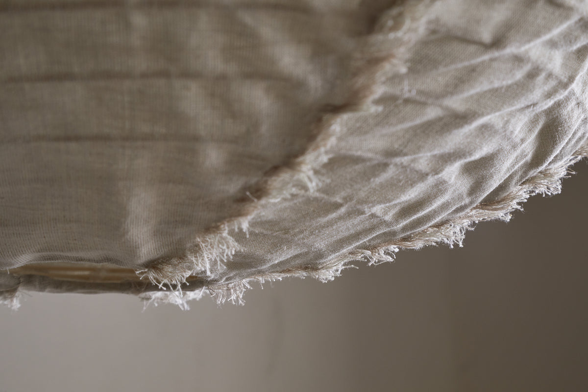 We choose to work with natural, recycled and reclaimed materials for our pieces; in this instance, cotton, valued for its softness, durability and timeless appeal. One of the most widely used natural fibres, cotton is both breathable and biodegradable, making it a responsible choice. To make this shade, fibres are carefully woven to create a tactile texture, then shaped by hand around a wire frame.