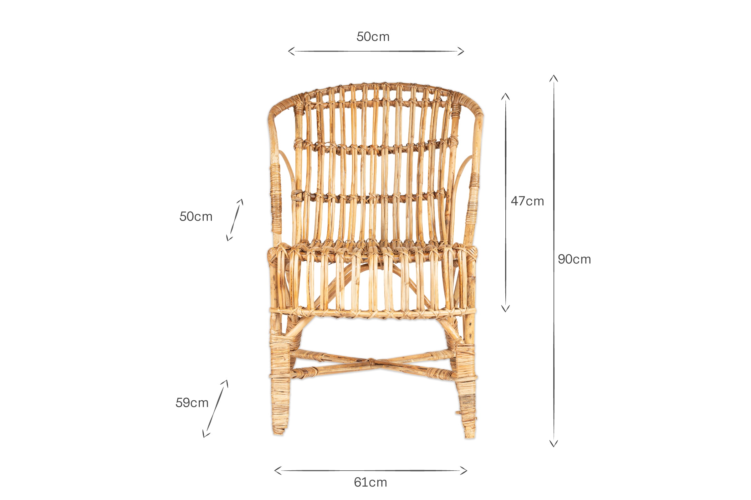 The Ajaya rattan dining chair blends the purpose of a dining chair with the relaxed and comfortable qualities of a lounging chair. The relaxed seating style is perfect for long lunches in the garden, and the rattan provides an appealing light and natural tone that adds a soft, warm look. The rattan has been skilfully curved into shape using a traditional steaming method. The joints of the chair are bound for stability using natural rawhide.