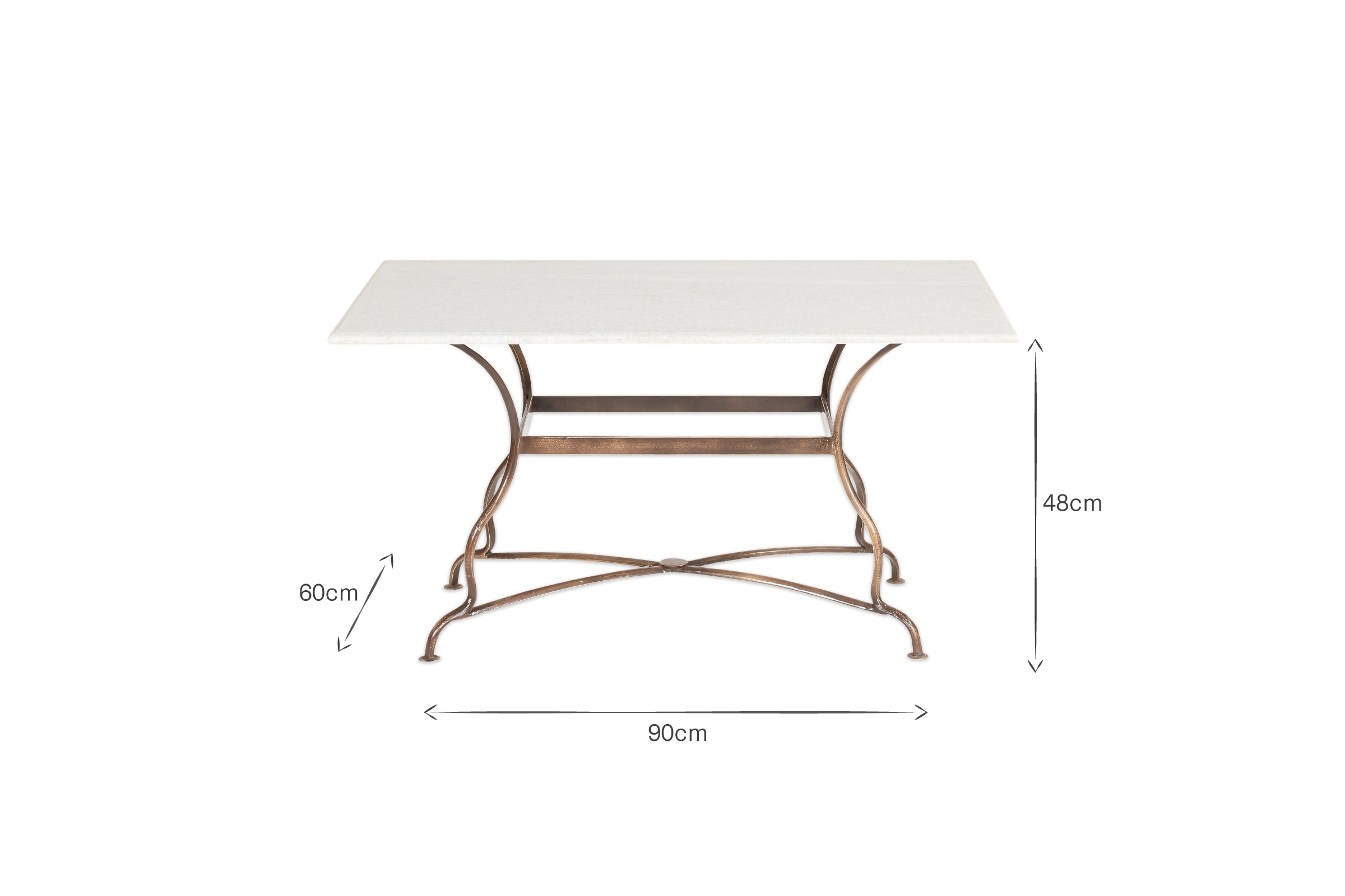 The Parwaha marble coffee table makes an elegant addition to any garden setting. The appealing off - white tones feel summery and light, blending effortlessly into an outdoor landscape. The smooth surface of the marble makes it a pleasure to use. The elegant iron legs offer an interesting design detail as well as providing sturdy and enduring support. The Parwaha marble coffee table has a timeless look that is at home on a townhouse balcony as it is a country garden.