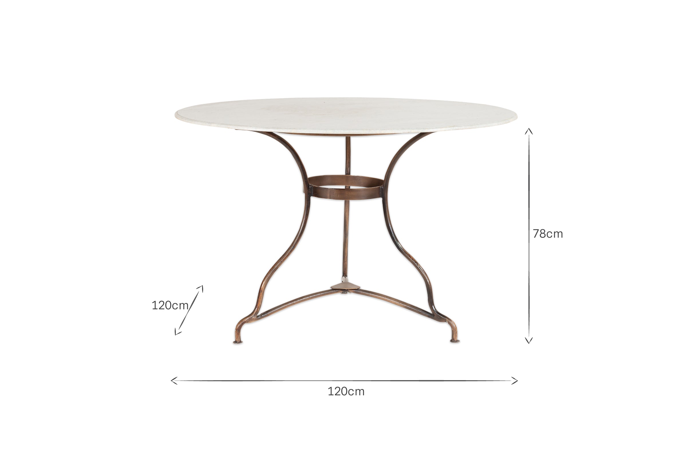 There is nothing quite as elegant as an outdoor marble dining table. The Parwaha marble dining table is the perfect blend of elegant iron work and clean off-white tones. The smooth marble top has a tactility that is hard to replace. The elegant curved iron legs add a sense of timeless grace and elevate the piece. Whether a city scape or country garden, the Parwaha dining table promises to be an enduring staple.
