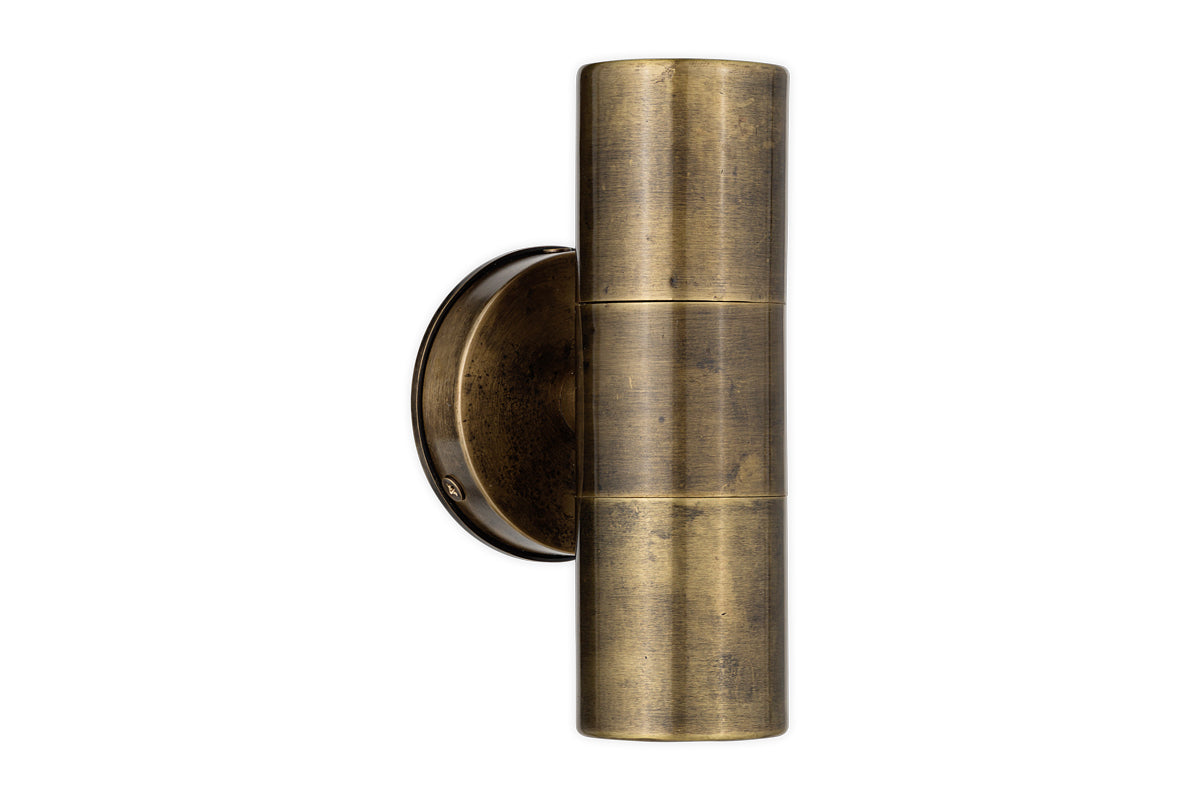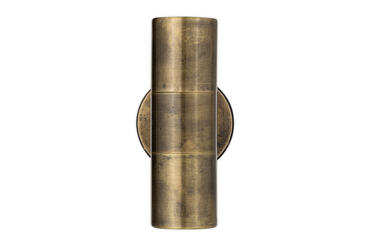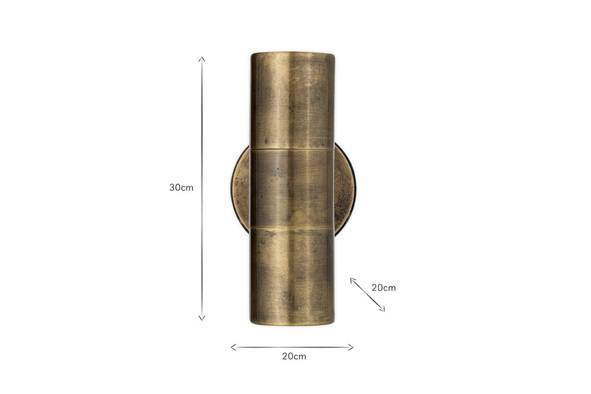 A stylish and timeless shape with industrial features, this lamp looks elegant on either side of a doorway or in a garden terrace area for ambient lighting. The diffuse light that is delivered from both above and below the cylindrical light creates a gentle glow all round for an atmospheric setting. Made from solid brass in a classic shape that blends elegance with an industrial aesthetic. The hardwearing materials are perfect for its intended use outdoors and allow it to withstand all weathers. The brass will oxidise over time, allowing it to age gracefully with its surroundings.