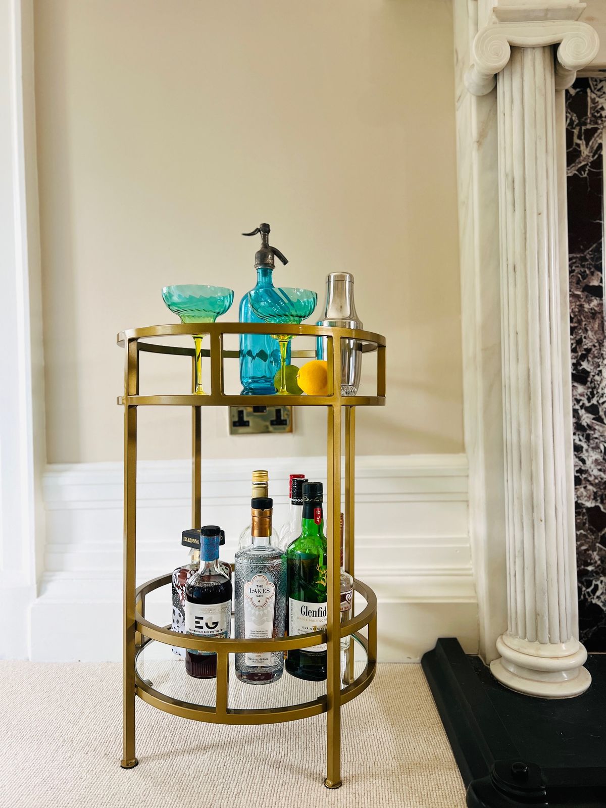 The brass drinks table is a lovely compact size and glamorous but not too showy. Love it.