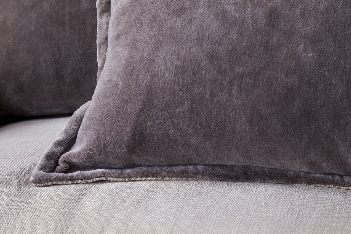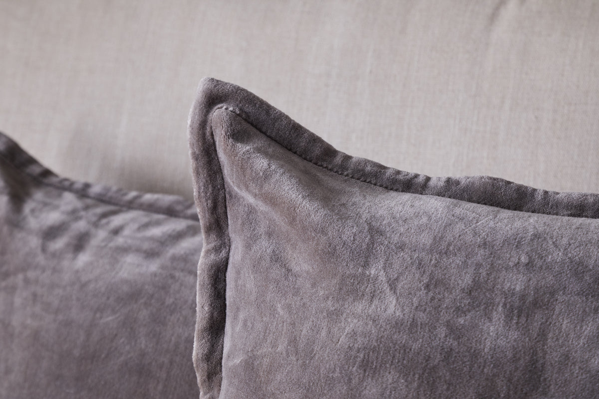 This elegant cushion cover adds a rich, tactile layer to any space with a thick velvet front in a soft charcoal tone. Backed with natural linen and finished with a subtle flange edge, it offers a refined yet relaxed look. The plush texture brings comfort and warmth to sofas, beds, or chairs. Available in two sizes and colours, it's a versatile accent for both modern and classic interiors.