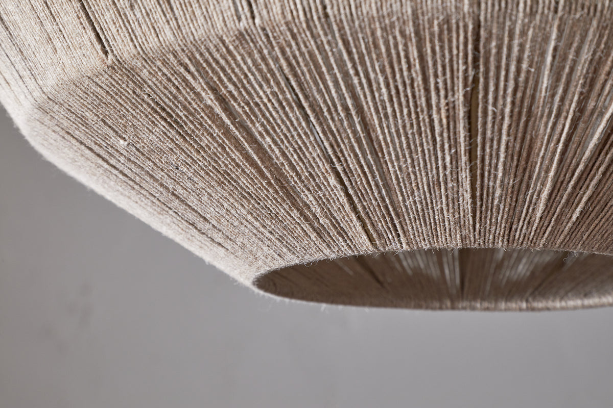 At nkuku, we choose to work with natural and sustainable materials, and jute is one of our favourites. Fast-growing and biodegradable, jute takes just 4-6 months to go from planting to harvest. Its strength and durability make it perfect for structural pieces, and its colourfast properties ensure longevity. For this shade, handwoven jute threads are intricately wrapped around a metal frame, creating a stunning piece that beautifully showcases sustainability and the beauty of the natural world.