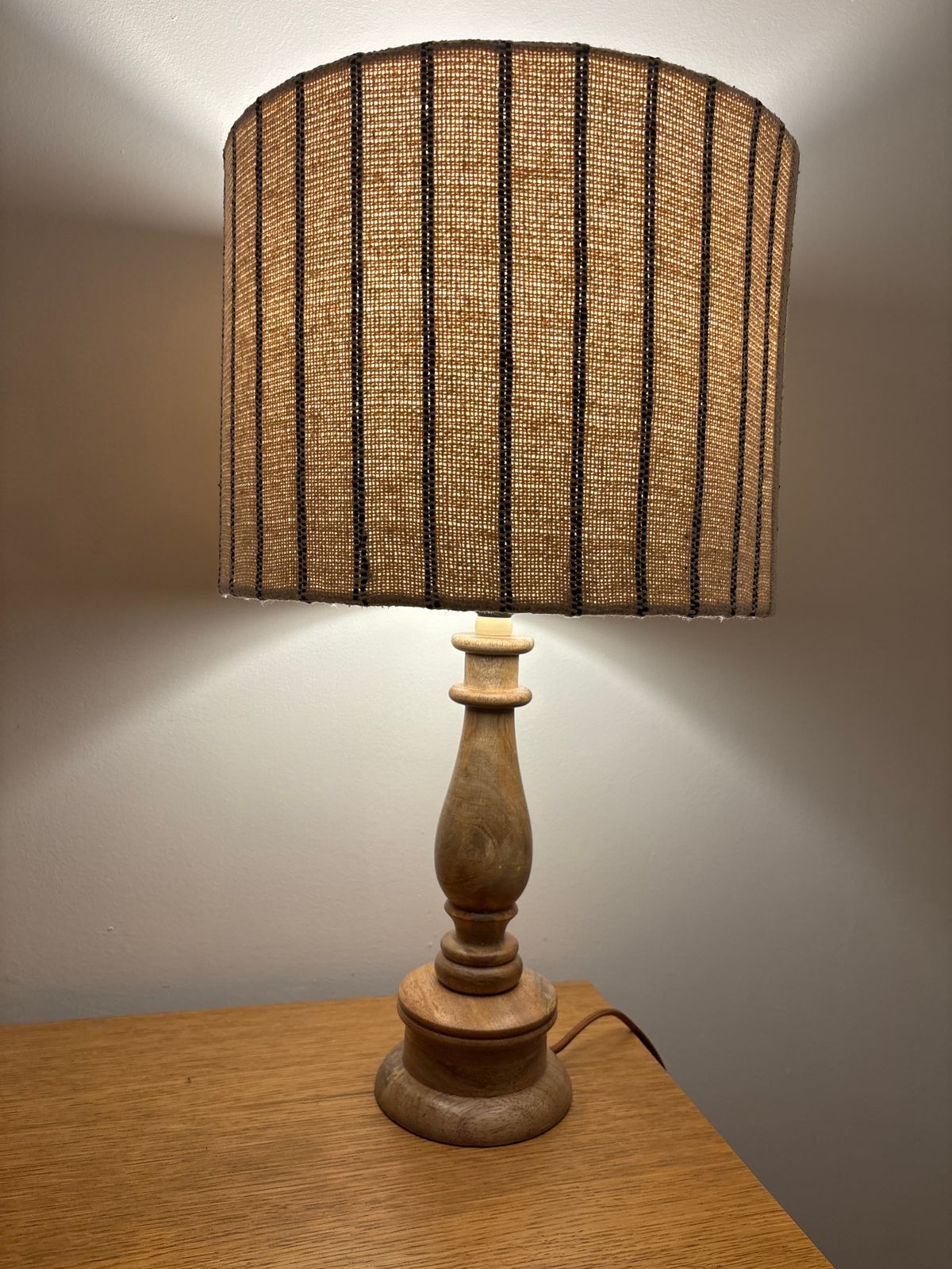 Beautiful lamp, adds a really elegant touch to our space and got at a great price due to the sale! Beautifully made and surprisingly light too, gives off a lovely glow with a filament bulb :)