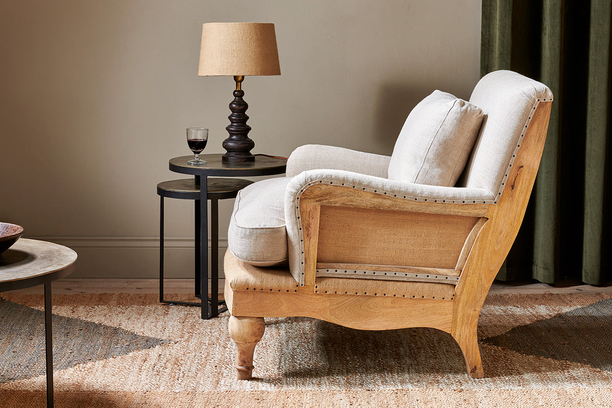 Our Abe upholstered chairs are timeless classics with a twist, the deconstructed back and sides reveals a natural mango wood frame and hemp lining. The front of each chair is upholstered in a tactile and calm stone or charcoal coloured linen. These beautifully crafted pieces make a subtle and elegant addition to a living room or bedroom.