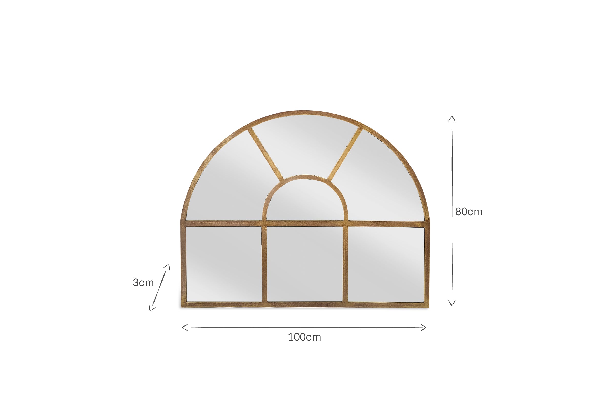 The elegant Imoma overmantel arch mirror combines striking architectural design with the sophisticated warmth of brass and mirrored glass. Carefully designed to sit perfectly above a mantel piece, the Imoma overmantel mirror has a beautifully curved arch and straight base; the finishing touch to any fireplace.