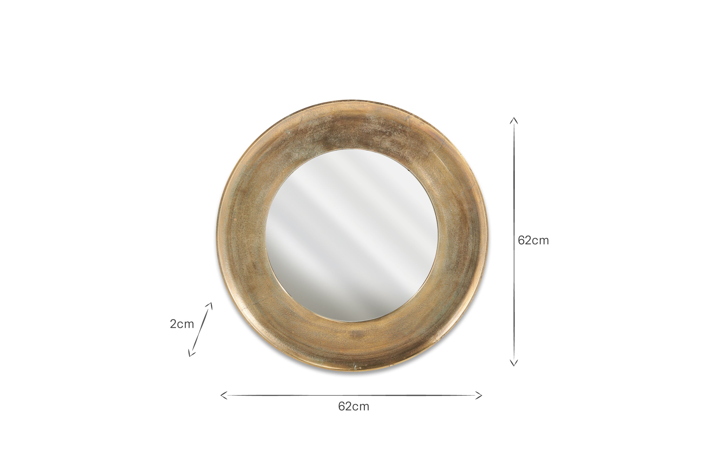 Stylish and beautifully crafted our Yakira mirror makes a striking focal point. The circular design has a deep textured border that celebrates the artisan process. The antique brass finish gives it an attractive antique look.