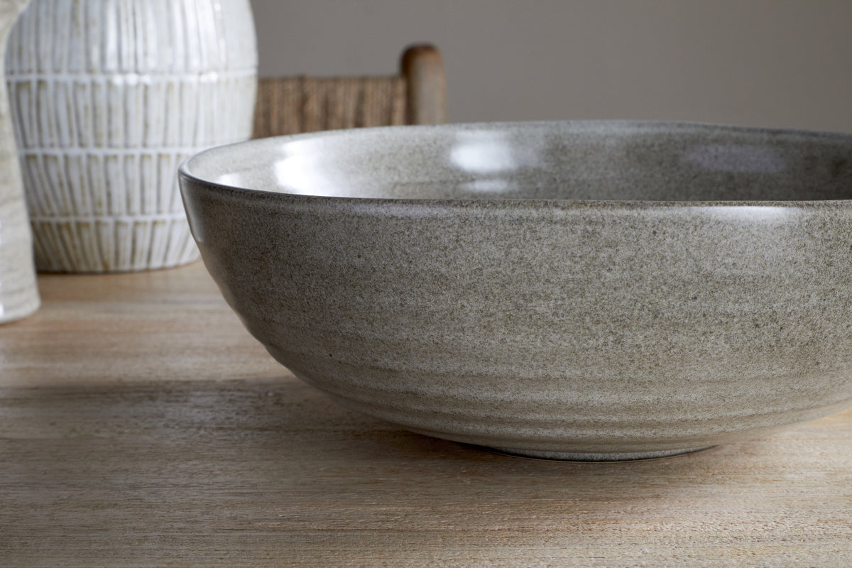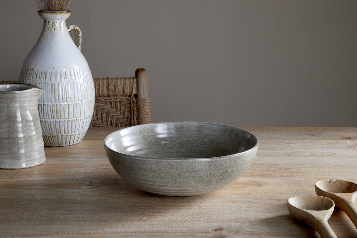 This serving bowl introduces a thoughtful update to our tableware collection. Finished with a richly layered reactive glaze, each piece displays subtle variations in tone, paired with a textured spiral design, making every piece unique. Designed to bring warmth and depth to everyday table settings, it pairs beautifully with matching dinnerware and serveware from the collection for an effortlessly elevated dining experience.