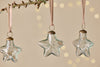 These 4 Sardi Star Baubles are the perfect adornment to any festive scene, sprinkling a little magic on your Yuletide revelries. Magnificent hung on a bare branch or twinkling among foliage, these organically shaped baubles are inspired by our much-loved set of 12 smaller Sardi stars and are fabulous teamed up with them for harmonious form and contrasting scale. Finished with an antique-style clasp and elegant velvet ribbon. Available in clear or antique gold.
