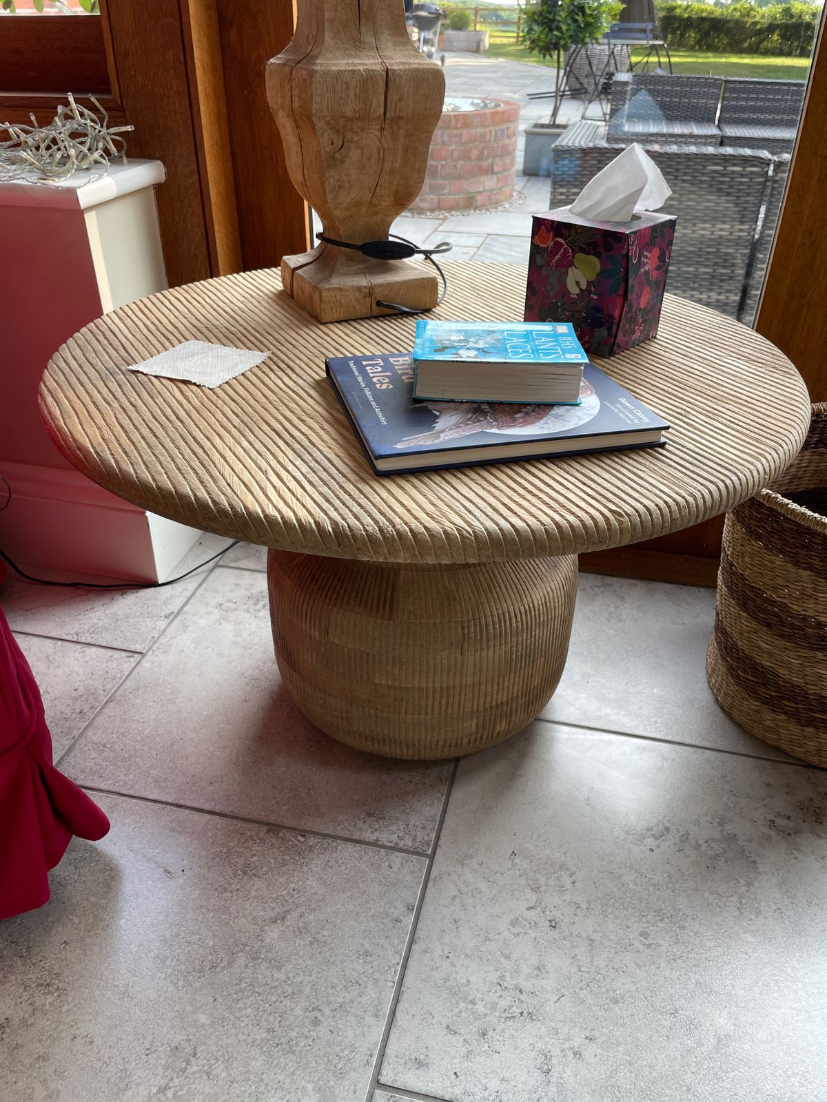 The heavy-weight, organic design of our Vivan coffee table makes it a standout piece that will look beautiful in any living scheme. Hand-carved from sustainable mango wood with a beautifully textured grooved surface that accentuates its simplicity and style, this generously proportioned table has a fresh contemporary feel that is effortlessly elegant. A side table is also available in the collection.