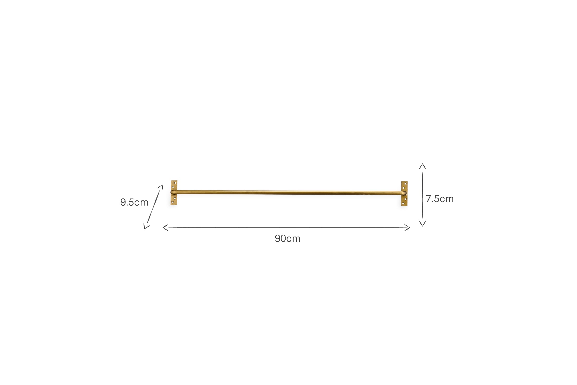 The brass Laila hanging rail is crafted from durable and sturdy iron. The elegant design makes this a versatile storage piece whether displayed in a kitchen area to display and hold pots of pans, or styled in a bathroom. To complete the look style with our Laila 'S' hooks.