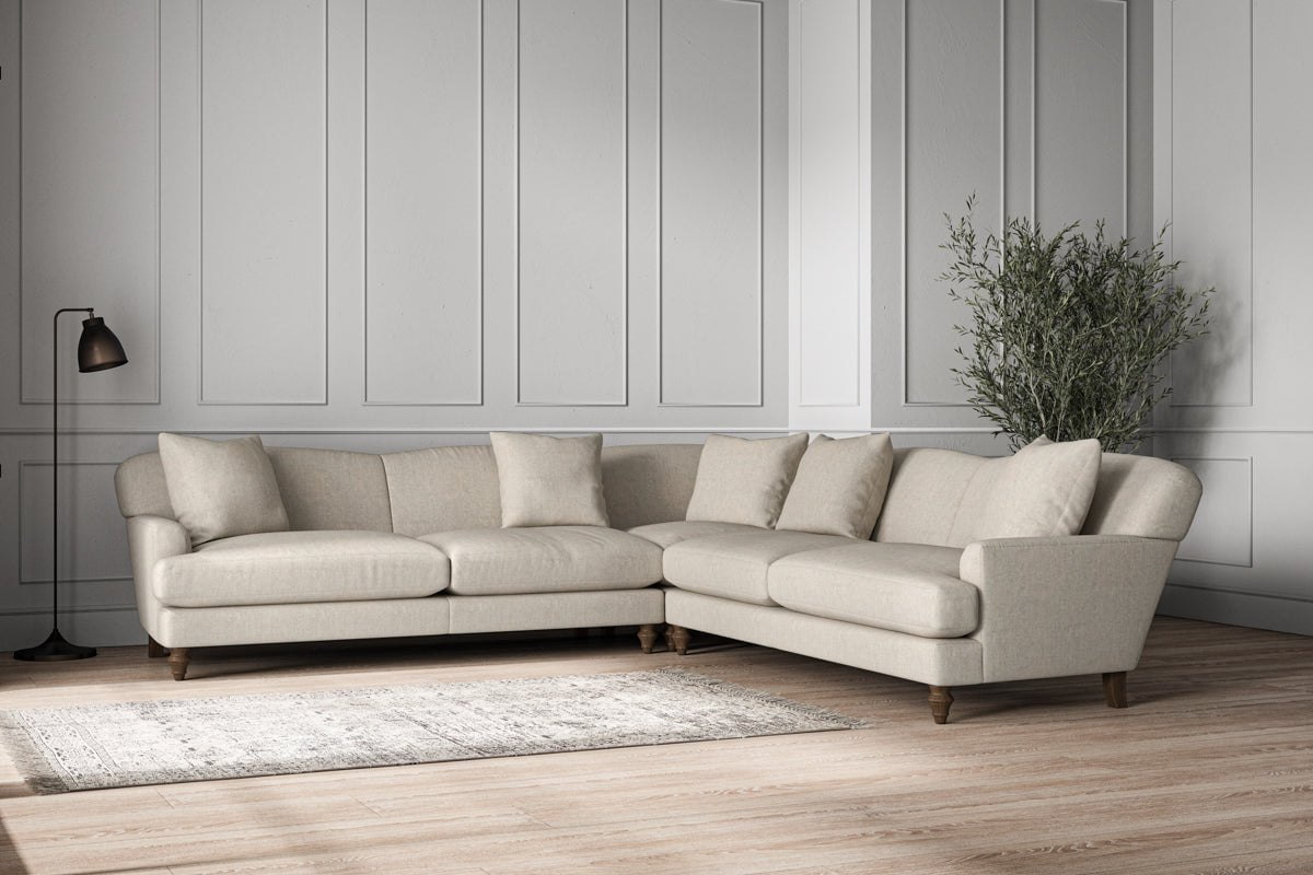 Our Deni grand corner sofa is generously proportioned with deep, sumptuous seat cushions for luxurious comfort. Handcrafted from a solid hardwood frame with high-grade steel serpentine springs and foam and fibre wrap filling, this timeless collection celebrates the best of British quality and design. Fine details include in-built back cushions, hand-turned hardwood feet and a set of five scatter cushions for added comfort.