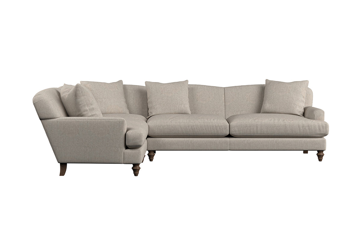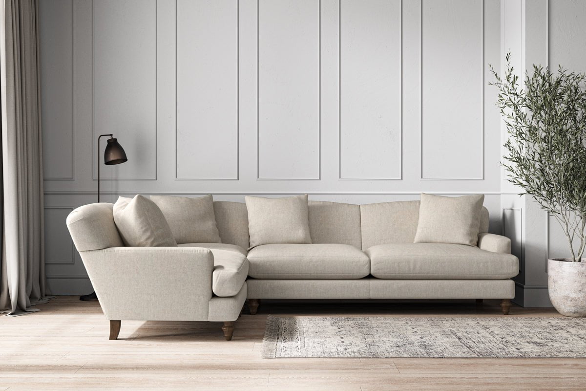 Our Deni grand left hand corner sofa is generously proportioned with deep, sumptuous seat cushions for luxurious comfort. Handcrafted from a solid hardwood frame with high-grade steel serpentine springs and foam and fibre wrap filling, this timeless collection celebrates the best of British quality and design. Fine details include in-built back cushions, hand-turned hardwood feet and a set of four scatter cushions for added comfort.