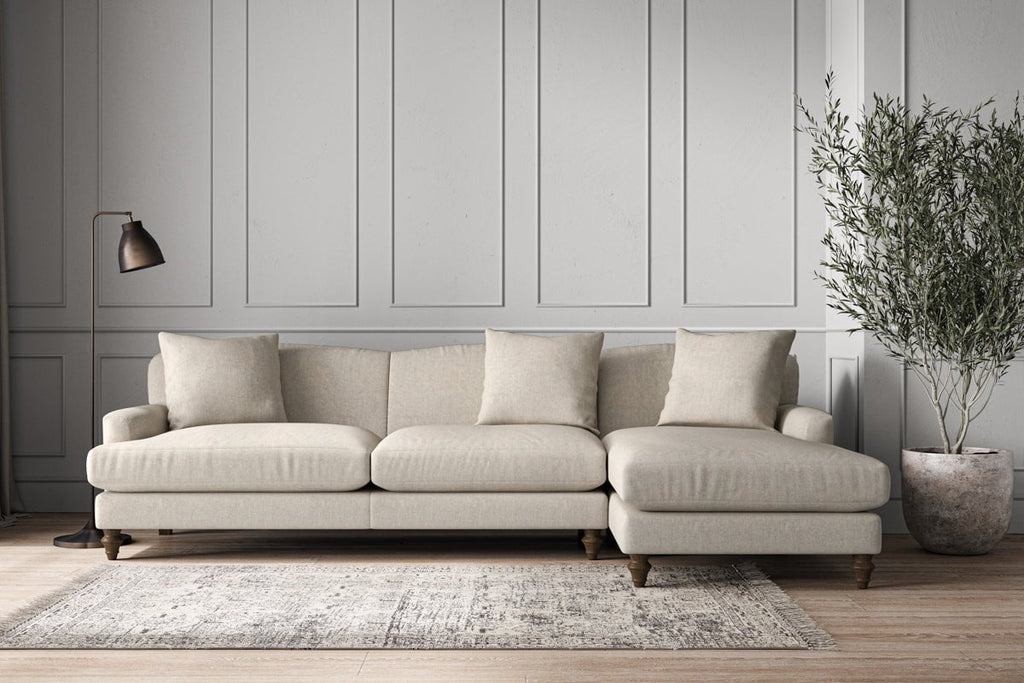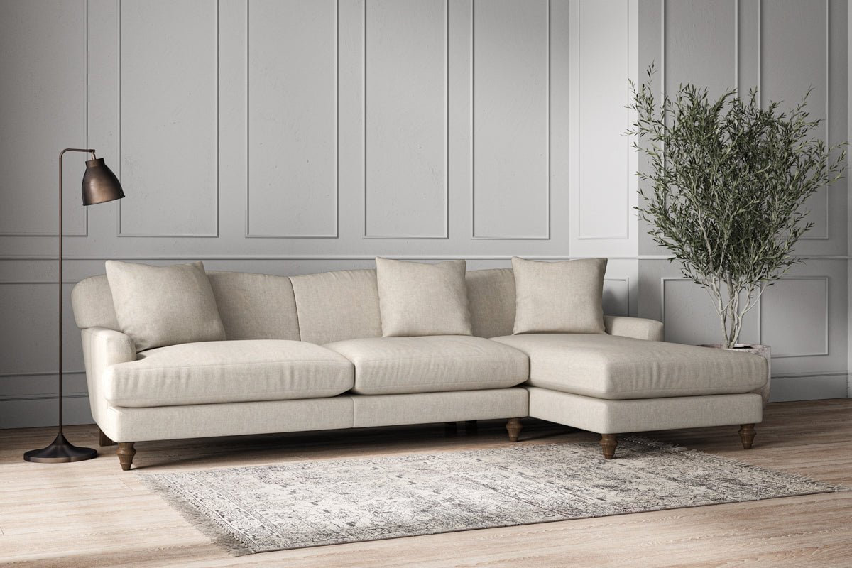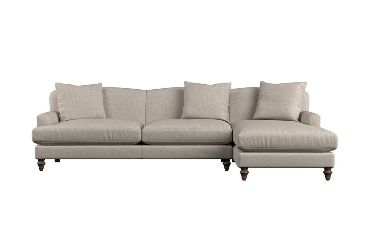 Our Deni grand left hand corner sofa is generously proportioned with deep, sumptuous seat cushions for luxurious comfort. Handcrafted from a solid hardwood frame with high-grade steel serpentine springs and foam and fibre wrap filling, this timeless collection celebrates the best of British quality and design. Fine details include in-built back cushions, hand-turned hardwood feet and a set of four scatter cushions for added comfort.