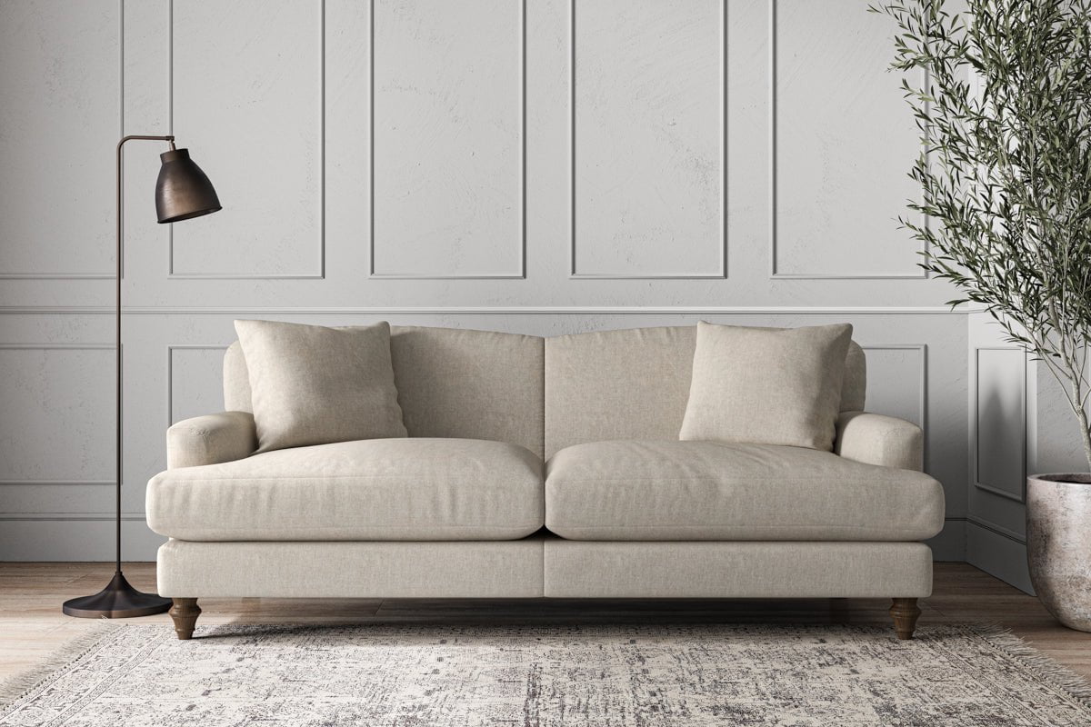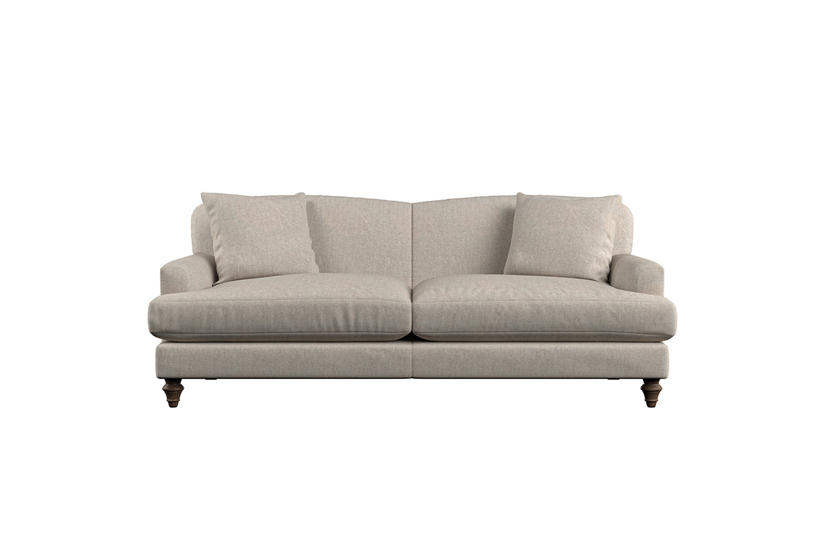 Our Deni large sofa is generously proportioned with deep, sumptuous seat cushions for luxurious comfort. Handcrafted from a solid hardwood frame with high-grade steel serpentine springs and foam and fibre wrap filling, this timeless collection celebrates the best of British quality and design. Fine details include in-built back cushions, hand-turned hardwood feet and two scatter cushions for added comfort.