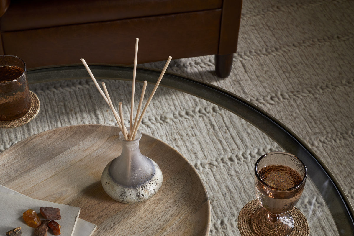 This reed diffuser is made in the UK by a family-run business, using a bespoke fragrance created exclusively for Nkuku. An evocative scent with rich notes of sandalwood, earthy cedarwood, and warming amber, it captures the essence of distant travels and the spirit of discovery. The vessel is finished in one of Nkuku's iconic textured styles and is designed to be reused as a small vase once the fragrance has dispersed.
