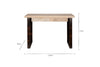 The frame is made from sheet iron which is then welded into the required shape. The mango wood top is a by-product of mango farming. Mango trees are initially grown for their fruit, and harvested over a number of years, then once the trees have stopped bearing fruit, they are cut down to allow farmers to plant more trees. Selling the waste material also provides the farmers with a supplementary income.