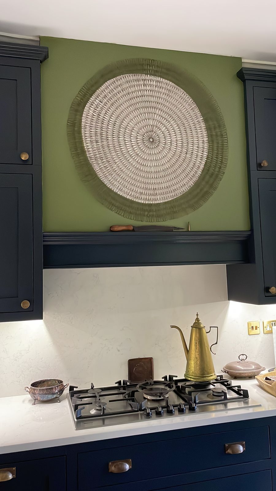 I wanted something to go above my gas hob to fill a big blank space after I had decorated. It really does look very effective but is difficult to get it to sit flat against the wall and had to use nails top and bottom. I have left some of the wall cream and then painted the nails the same colour as the wall on the outer rings. Very pleased with the end result.
