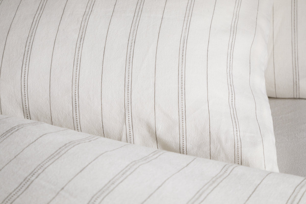 Made in Portugal, these pillowcases are woven from a blend of hemp and organic cotton. Hemp grows without the need for chemicals, is biodegradable, and offers a soft, buttery texture that only improves with time. Organic cotton is grown without synthetic pesticides or GMOs, supporting healthier ecosystems and farming practices.