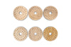 This beautiful set of 6 Anali mango wood coasters are etched with simple concentric circles that reveal the paler grain beneath to create a striking contrast between the natural tones of the raw wood. Each coaster has a central hole, designed to sit neatly on a holder for easy storage when not in use, creating an elegant silhouette at the same time.