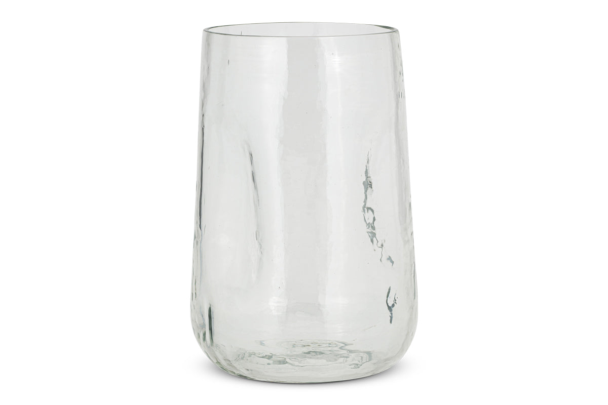 Our Kotri vase is an elegantly simple piece with a nkuku twist. The clear, hand-hammered glass has a pinch in the middle, creating a tactile form with subtle visual stand-out. This organically shaped vase is perfect for fresh flowers with a generous neck to hold a full bunch of blooms.