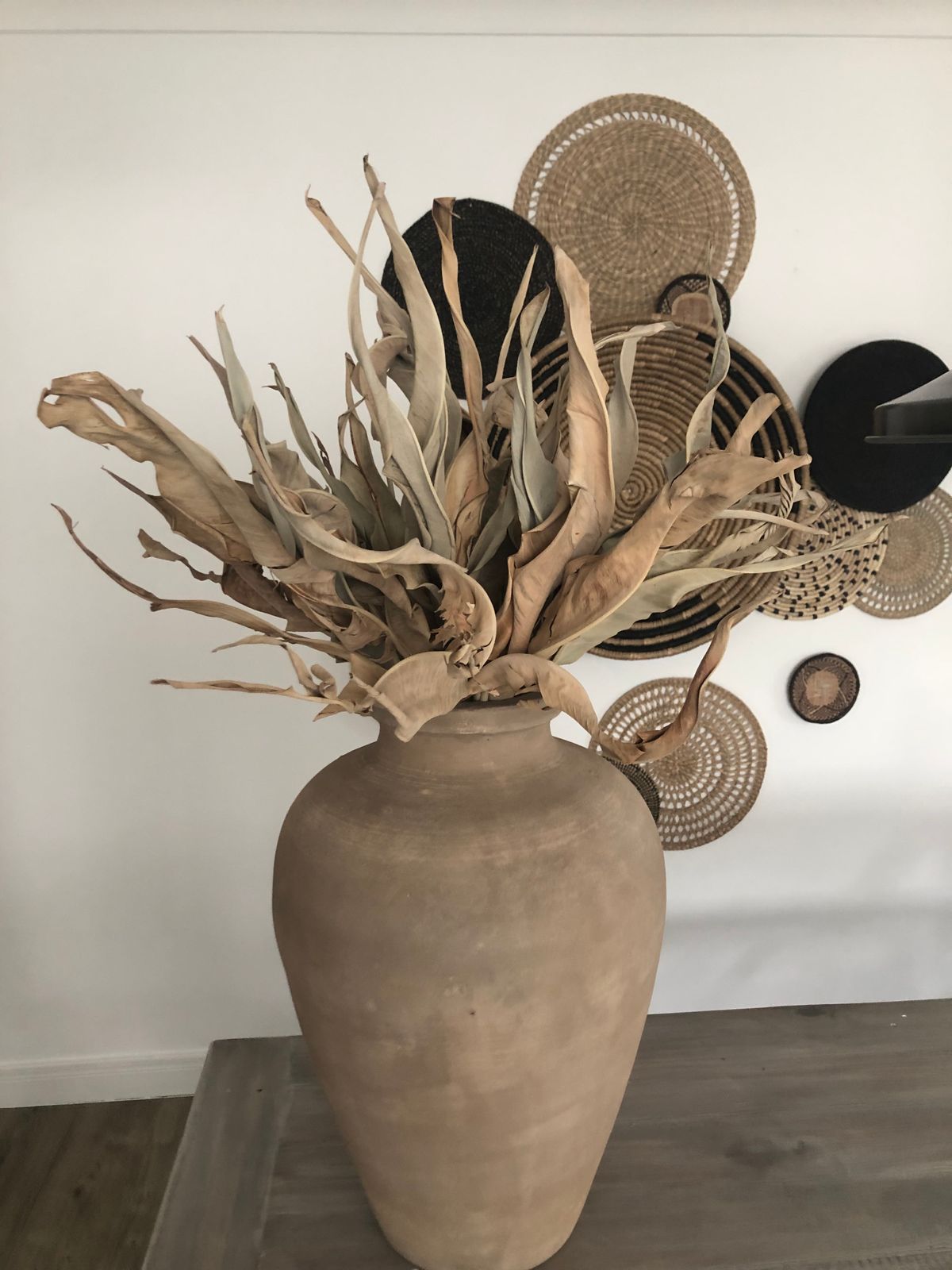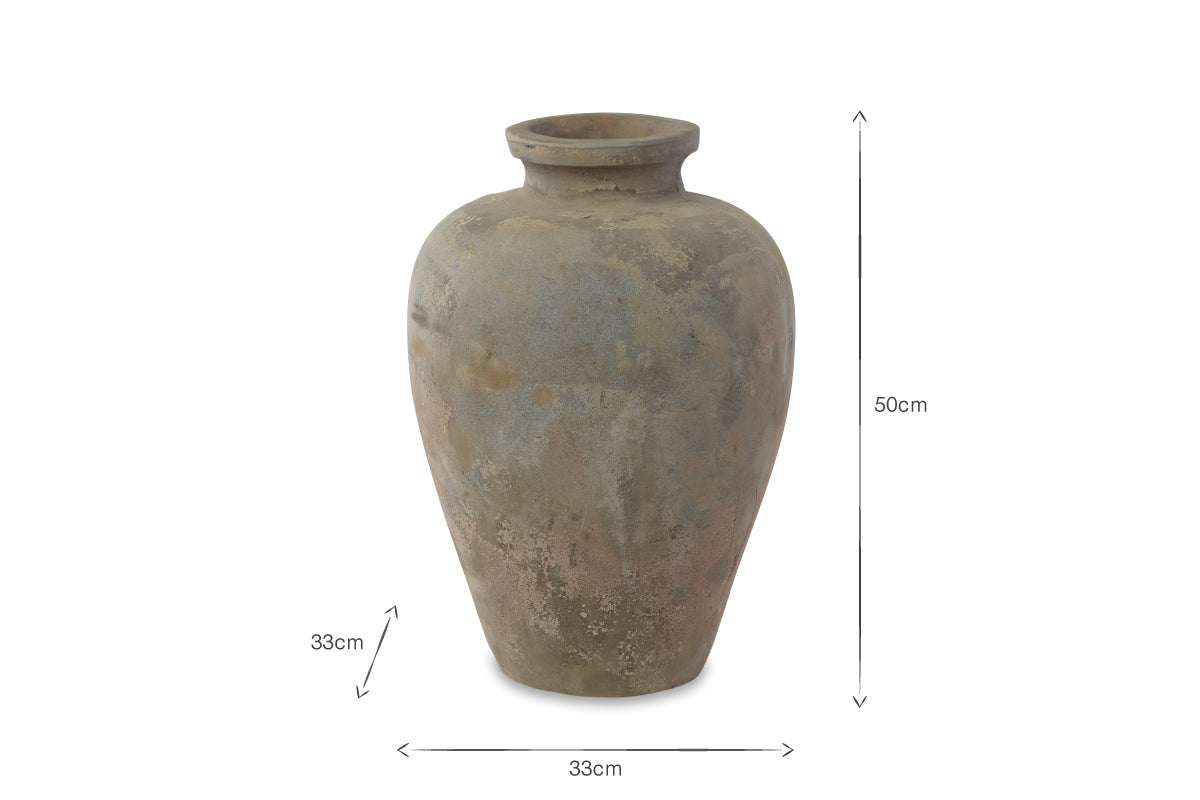 These traditional urn shaped clay pots are handmade from clay with a raw natural finish. We love the aged look of these pieces. The pots are made using traditional coiling techniques in Vietnam. Please note these pots are frost proof and there are holes in each base for drainage.