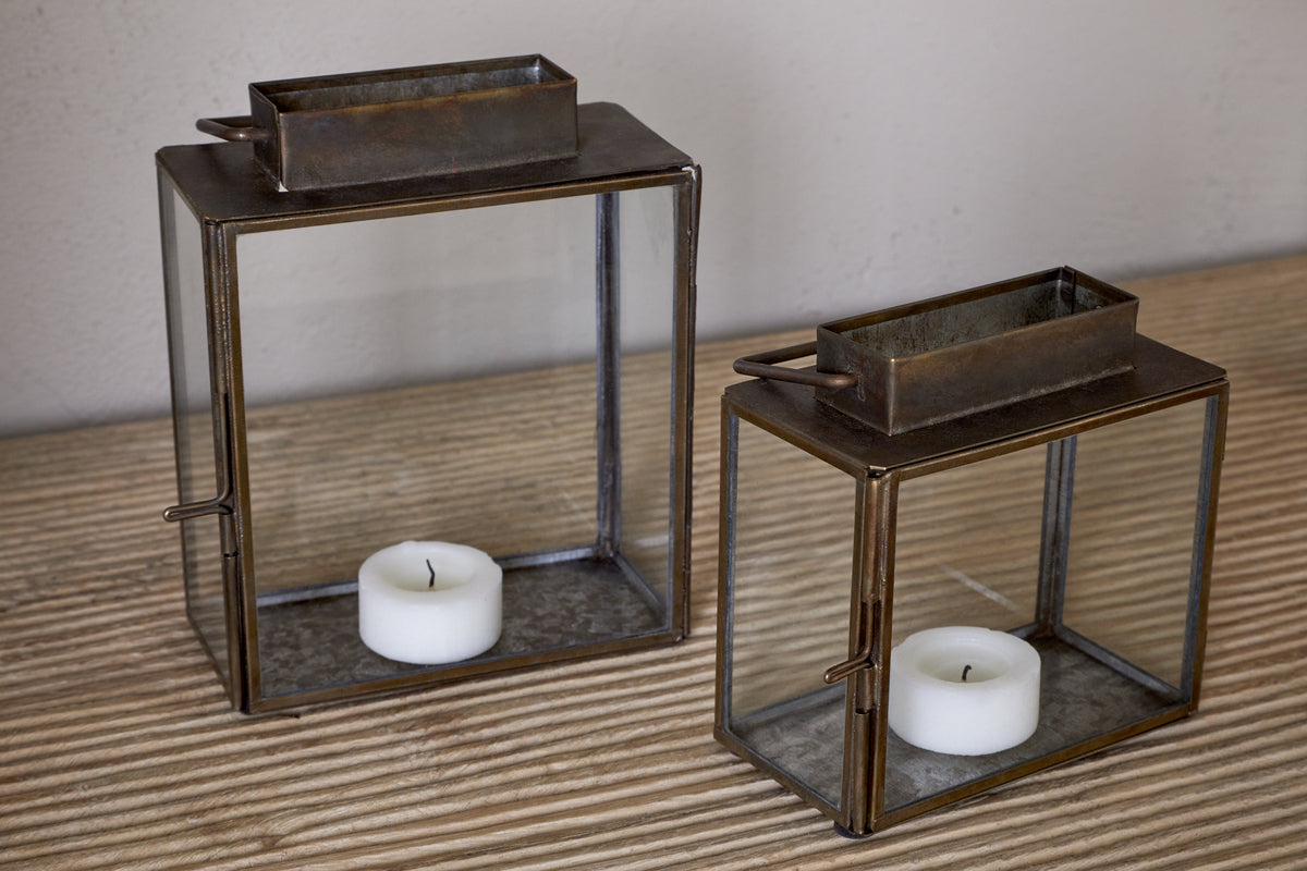 Part of our mini lantern collection, this compact design is ideal for adding soft candlelight to mantelpieces, dining tables, and sideboards. A simple pin fixing allows the glass door to open with ease, making placing a candle inside effortless. Crafted for both practicality and charm, it's perfect for styling alone or as a pair. Available in two sizes.