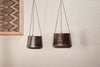 Our Endo iron hanging planter has a rich dark tone that is created by the reclaimed nature of this material and its characterful patina. Well-proportioned, this planter is ideal for a variety of indoor plants and is strung with a simple leather string.