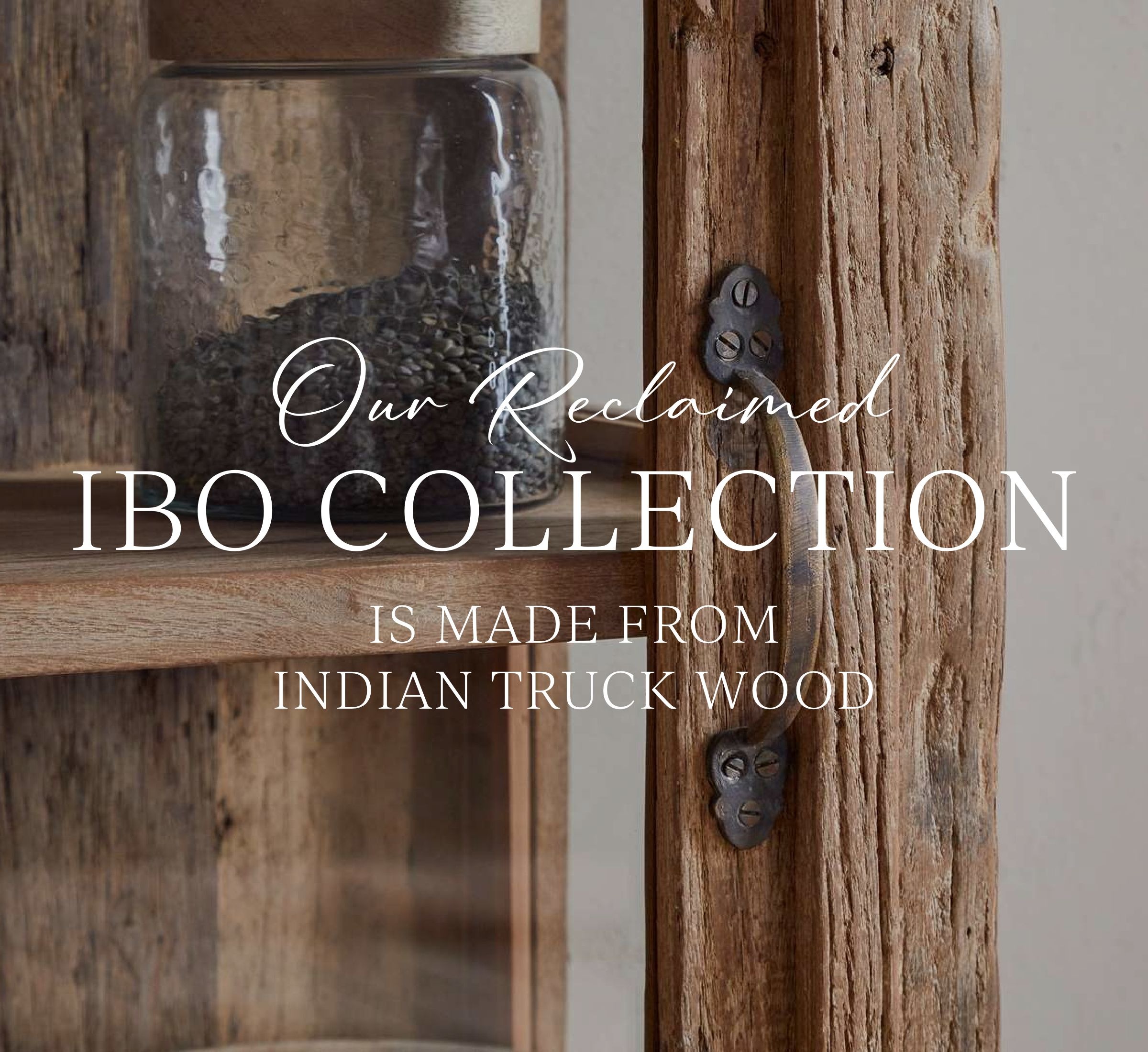 The Ibo furniture collection celebrates the versatility and creativity of Indian craft. Made from rustic reclaimed wood, these pieces have spent a former life travelling on the exterior of an Indian truck, and have been re-purposed to create this stylish collection.