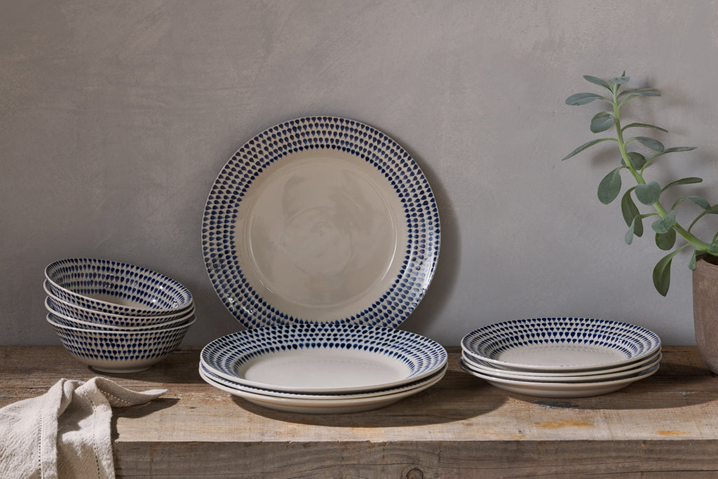 Our simple yet stunning Indigo Drop ceramic plates are handmade in Vietnam, using age-old traditions that have remained unchanged for generations. This set of 12 ceramics includes everything you need for four people - 4 dinner plates, 4 side plates, and 4 bowls. Each piece is hand painted with the beautiful Indigo Drop design. The collections are painted and shaped by hand incorporating traditional and contemporary influences.