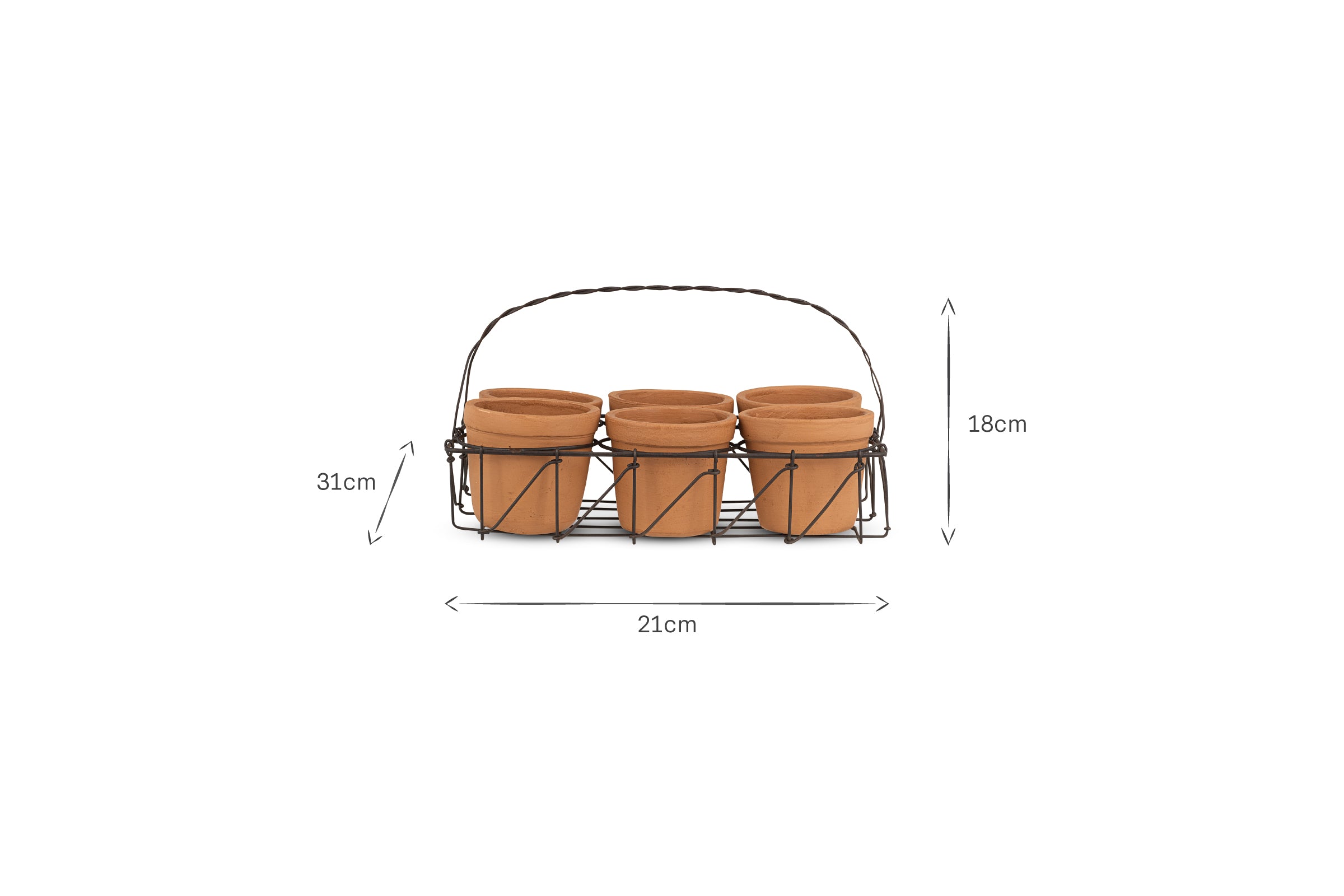 This Dilipa six-pot planter makes for a pretty addition to a kitchen counter. Ideal as a gift for foodies and gardeners alike, it creates the perfect space for a micro herbarium. Fill with basil, thyme, oregano, mint, or any other favourite herbs for an easy way to create a fragrant miniature edible garden. The variations in texture and tone of the terracotta pots bring natural warmth, while the simple wire basket creates a stylish way to keep everything neatly in one place.