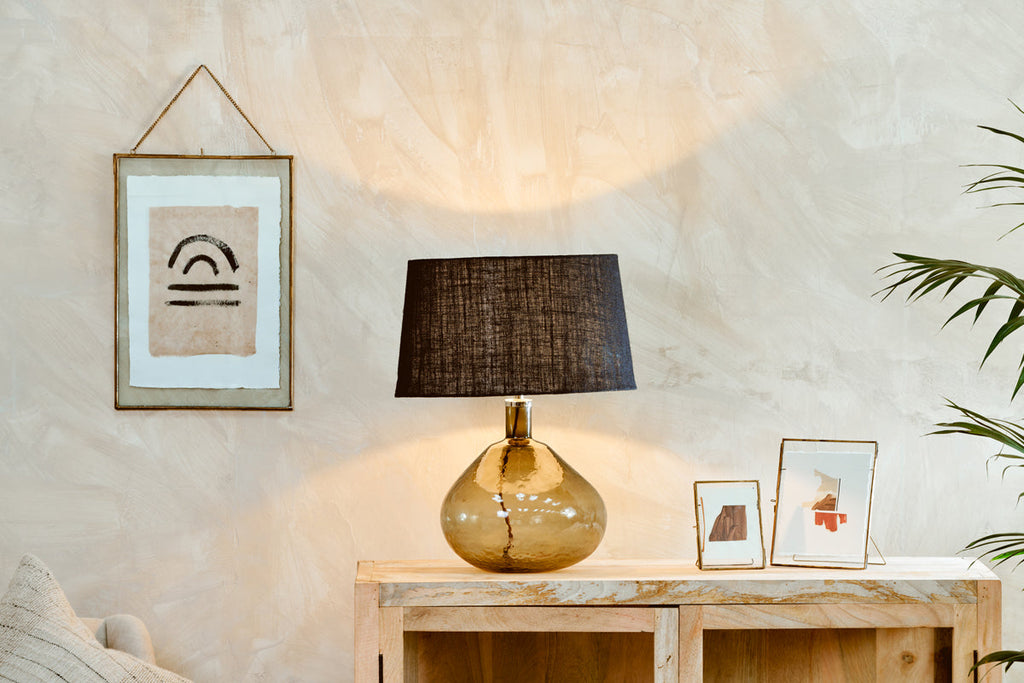 Elegant and timeless, the organic shape of these beautifully crafted green smoke-hued glass lamp bases would add the finishing touch to any interior. The Baba is skilfully made from recycled glass, handblown into a mould and delicately hammered to create an irregular but smooth finish. The height of these elegant lights makes them ideal for a sideboard or console. Complete the look with one of our lampshades.