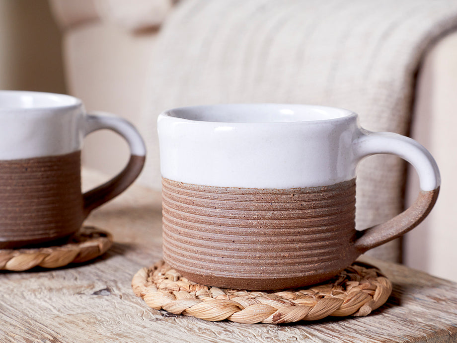 Our ceramic coffee mugs combine hand-painted techniques and colourful designs with natural contours, creating unique and eye-catching pieces. Each tea cup, coffee and cappuccino mug is handcrafted by talented makers to bring a timeless style to your kitchen. The organic shapes and textures produce the ideal rustic coffee mug to add to your collection. Read less