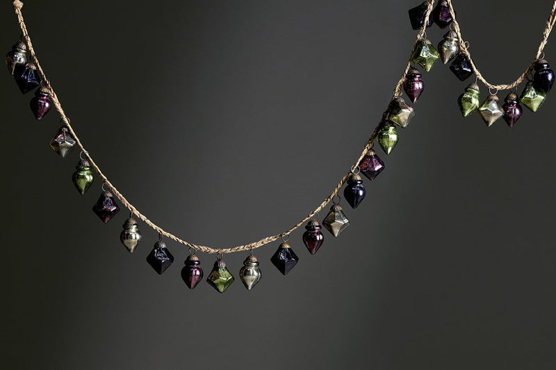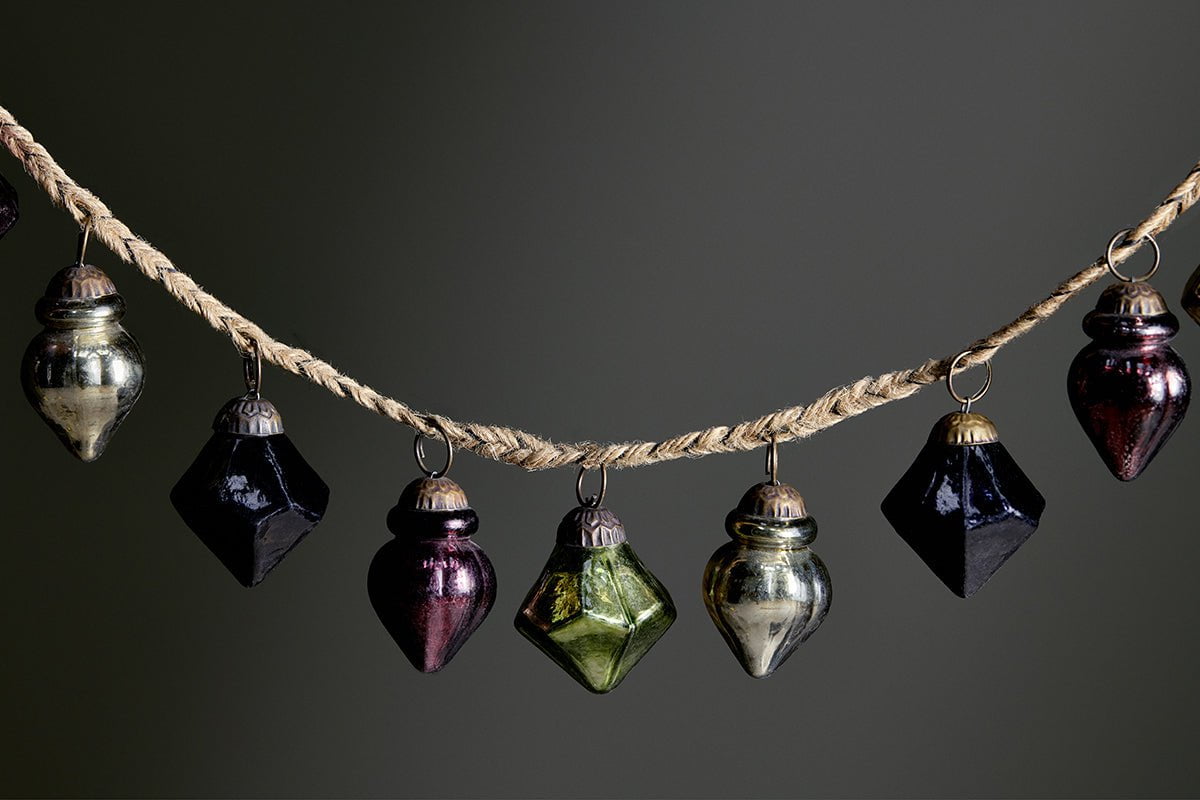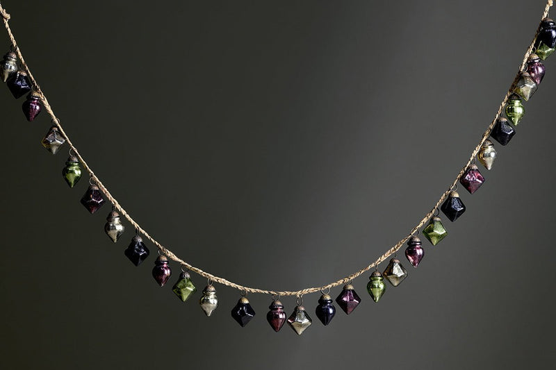 These beautiful garlands are a Christmas essential; each pretty bauble is handmade from recycled glass and joined together with natural jute. Each garland is over a metre in length.