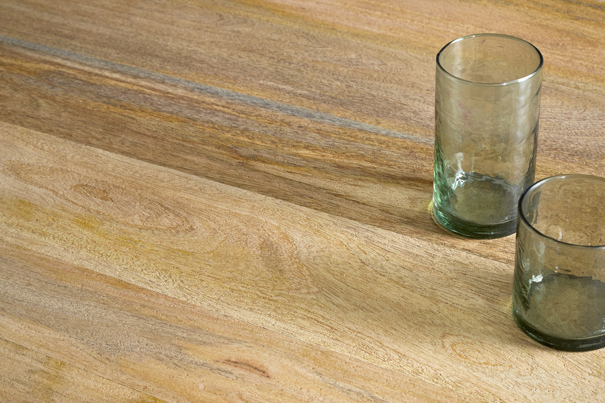 Each Anbu dining table is handcrafted to create a smooth, refined form. The surface is gently sandblasted for added texture, while hand-turned legs bring subtle elegance. Crafted from mango wood, a sustainable by-product of India-s fruit industry, this piece blends timeless design with meaningful materials.