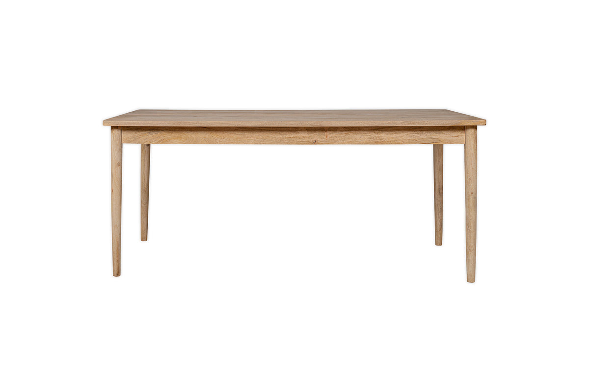 This beautifully proportioned dining table brings a relaxed elegance to any setting. The natural mango wood surface has a soft, textured finish that enhances its organic character, while the understated beauty of the legs adds a subtle sense of formality. Part of the Anbu collection, it-s a versatile piece that balances simplicity with quiet sophistication.