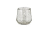 These unique pieces are crafted with care from hand-blown recycled clear glass mixed with slivers of aluminium to create a unique pattern for a subtle lustre that gives a delicately ethereal glow when a candle is lit inside. The organic shape, with its pinched detailing, is created by an artisan using tongs when the glass is removed from the mould, meaning no two pieces are alike. Available in two sizes.