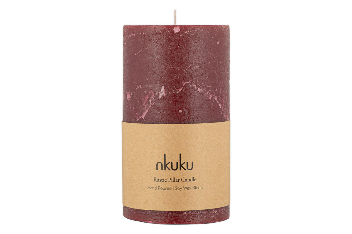 Our Large Rustic pillar candle has a textured finish for a relaxed take on a classic shape and a rich cherry tone in keeping with our seasonal colour palette. These were created specifically for our candle holders which are designed to hold a larger candle. They look beautiful on a sideboard or mantelpiece, in a living room or hallway or as the centrepiece of a table setting for a warm and welcoming scene.