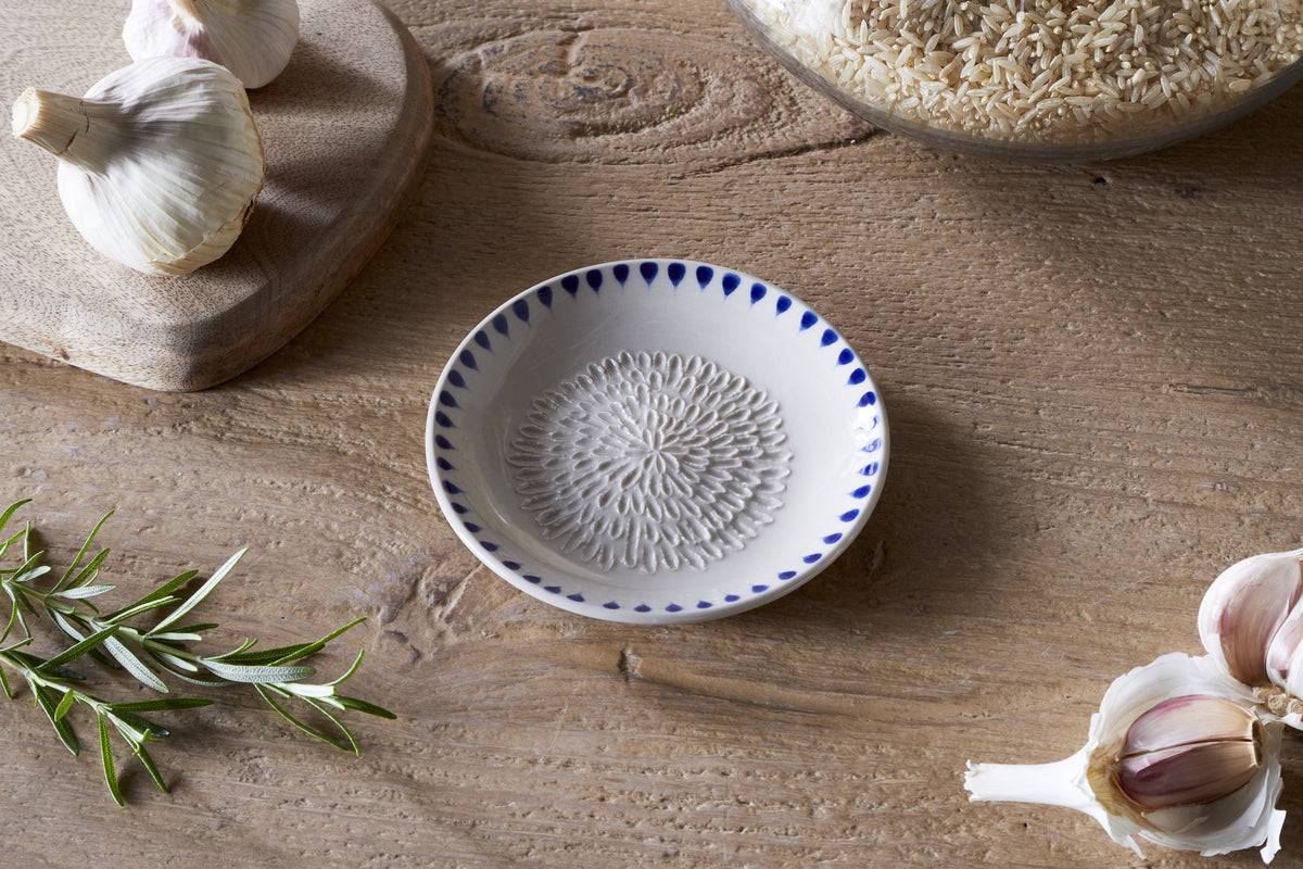 A thoughtful extension of our bestselling Indigo Drop collection, this garlic grater combines form and function in a beautifully simple design. Perfect for grating garlic or ginger, it also doubles as a dish for mixing oils, spices, or pastes. Finished with the collection-s signature hand-painted indigo pattern, it brings a touch of charm to everyday prep.