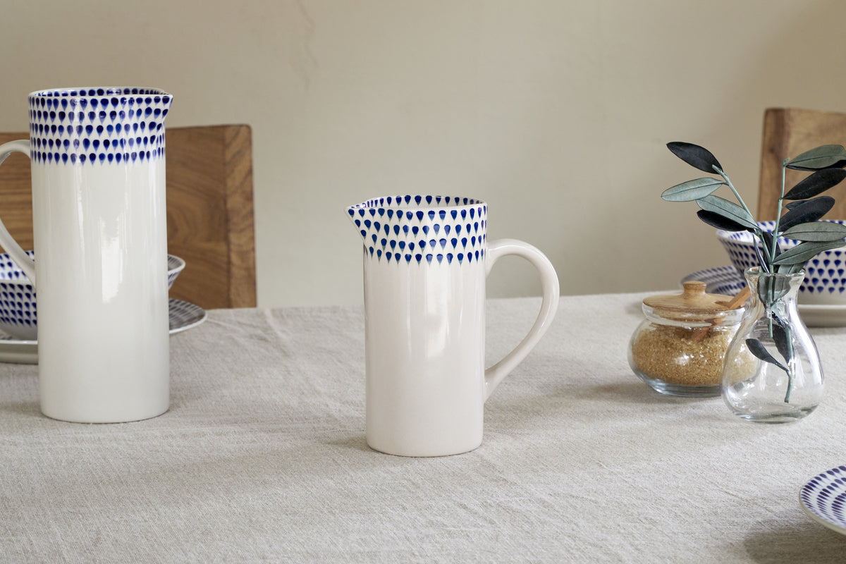 With its tall, straight silhouette and rich blue drop design, this smaller version of our Indigo Drop jug brings the same clean, contemporary feel in a more compact form. Ideal for serving milk or cream, it-s a thoughtful addition to breakfast or afternoon tea. A versatile piece that balances everyday function with refined, understated style.