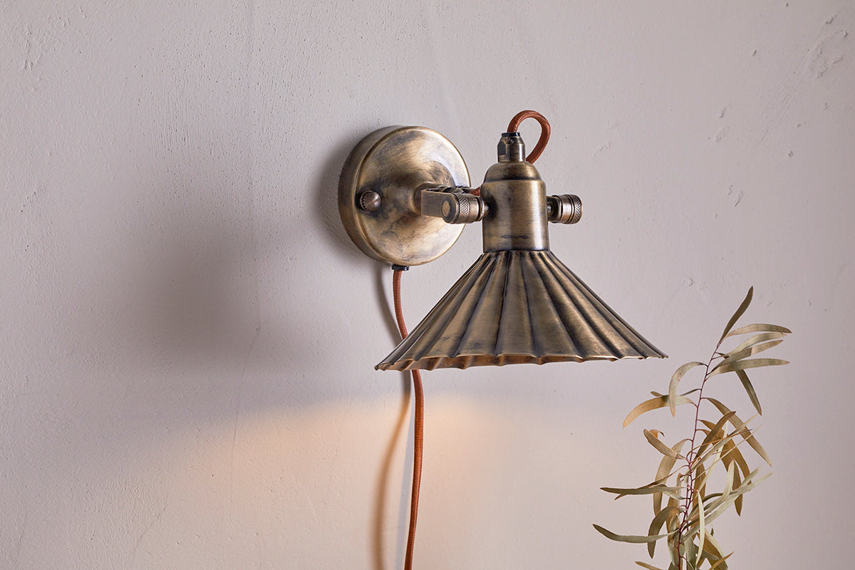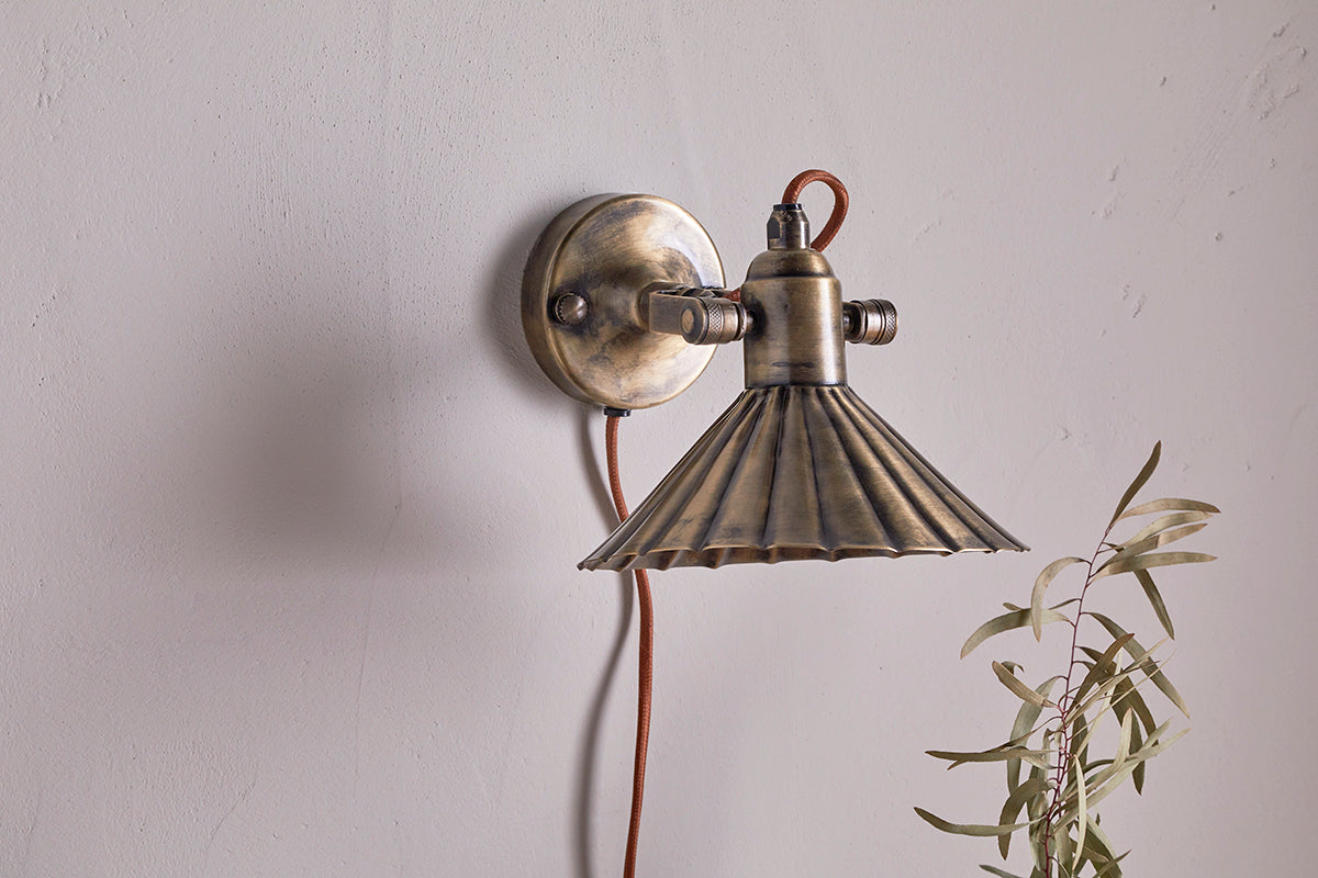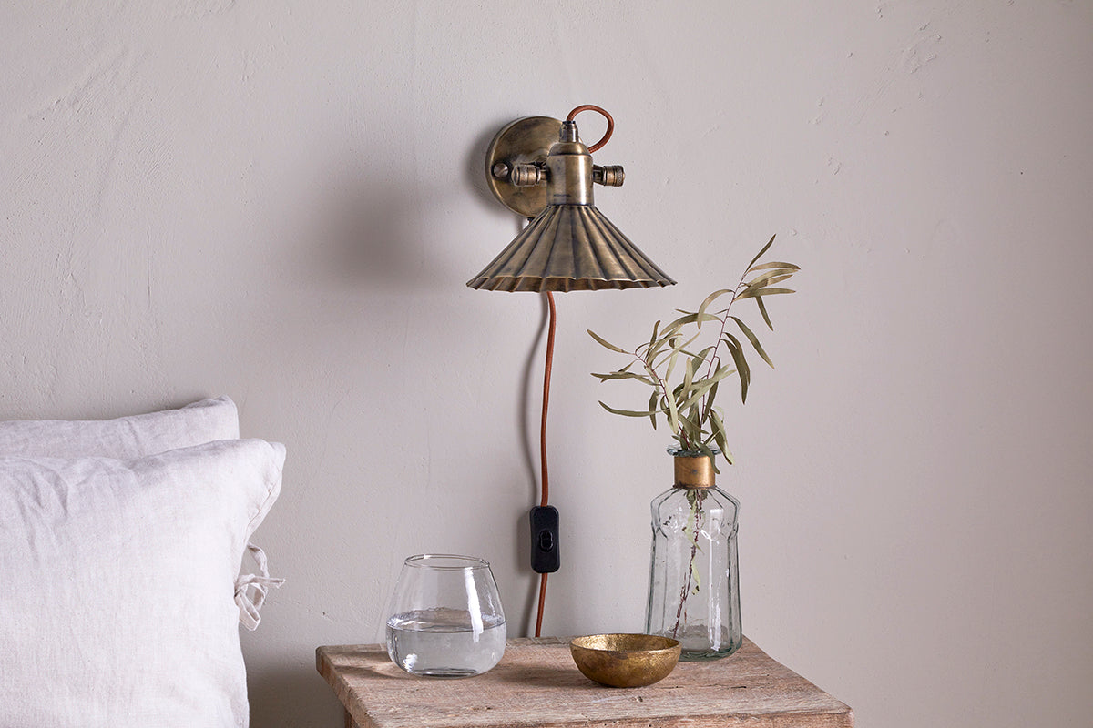 The eye-catching Moti Wall Lamp adds an attractive finishing touch to a bedside setting or makes the perfect directional light in a reading nook, or anywhere where directional light is required. The solid brass, handmade metal work has been etched for texture and interest, creating a truly unique piece. It is perfect for creating an easy decor update as the plug-in feature means no electrician is required to get it up and running.