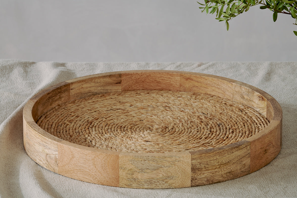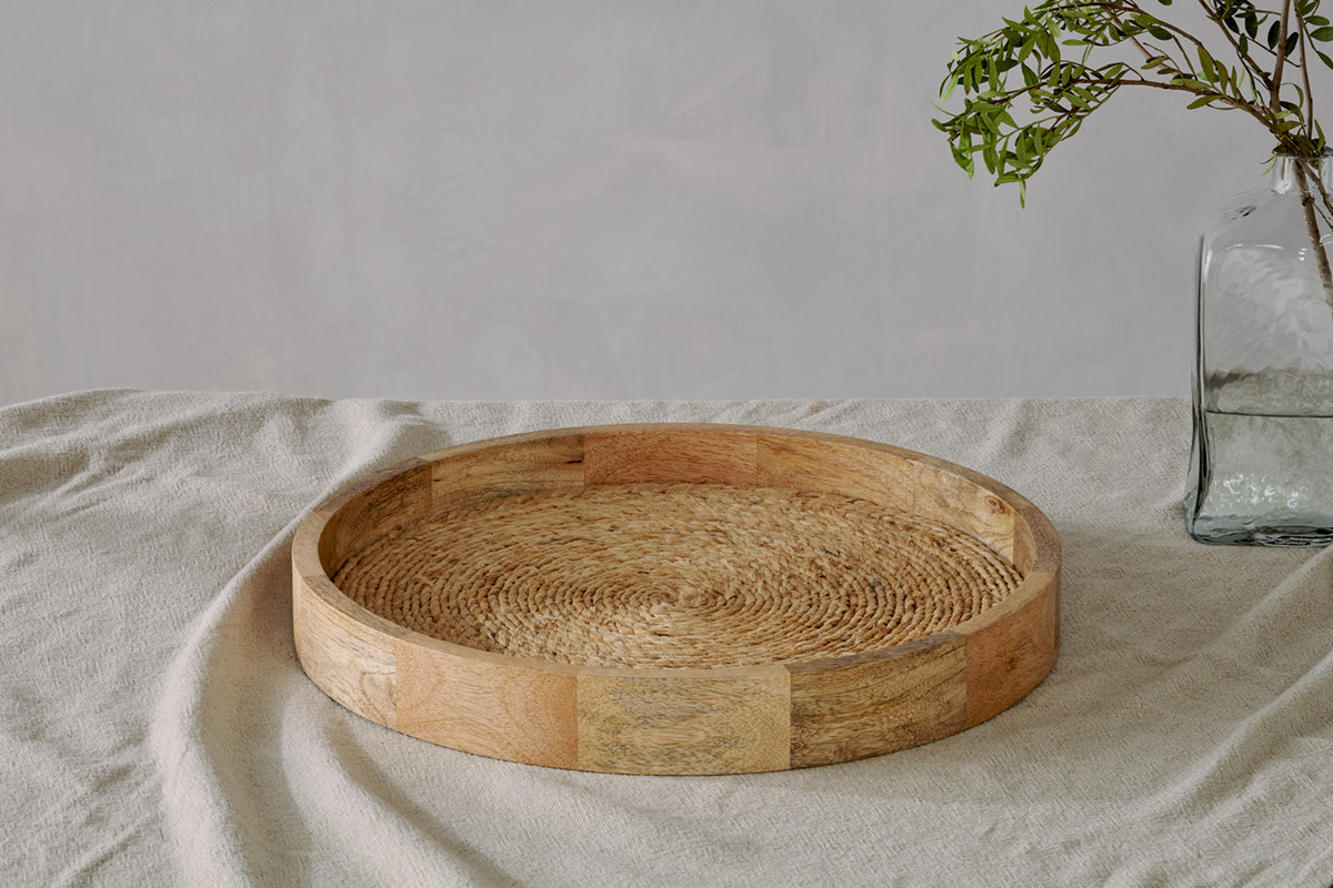 Add texture to your serveware collection with this beautifully woven jute and mango wood tray. The beautifully tactile design makes it ideal for serving up bowls of nibbles or tapas, but would look equally at home outside of the kitchen or dining room as a place to display found treasures or a few favourite candles. Mango wood is by-product of the mango industry once the trees have stopped bearing fruit, and jute requires little water to grow.