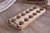 This elegantly carved egg holder is worthy of display on a kitchen counter, with or without eggs. Useful and beautiful, its simple aesthetic and daily functionality using natural materials and craftsmanship speaks to the nkuku ethos. We love using mango wood in our designs for its tactility, and for the natural variations in the grain that bring added interest to a piece. The contrast of the wood against the aged iron handles adds an industrial touch.