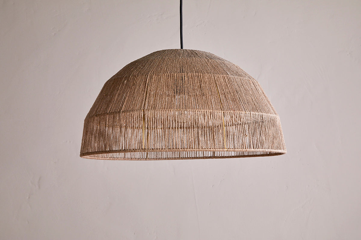 At nkuku, we choose to work with natural and sustainable materials, and jute is one of our favourites. Fast-growing and biodegradable, jute takes just 4-6 months to go from planting to harvest. Its strength and durability make it perfect for structural pieces, and its colourfast properties ensure longevity. For this shade, handwoven jute threads are intricately wrapped around a metal frame, creating a stunning piece that beautifully showcases sustainability and the beauty of the natural world.