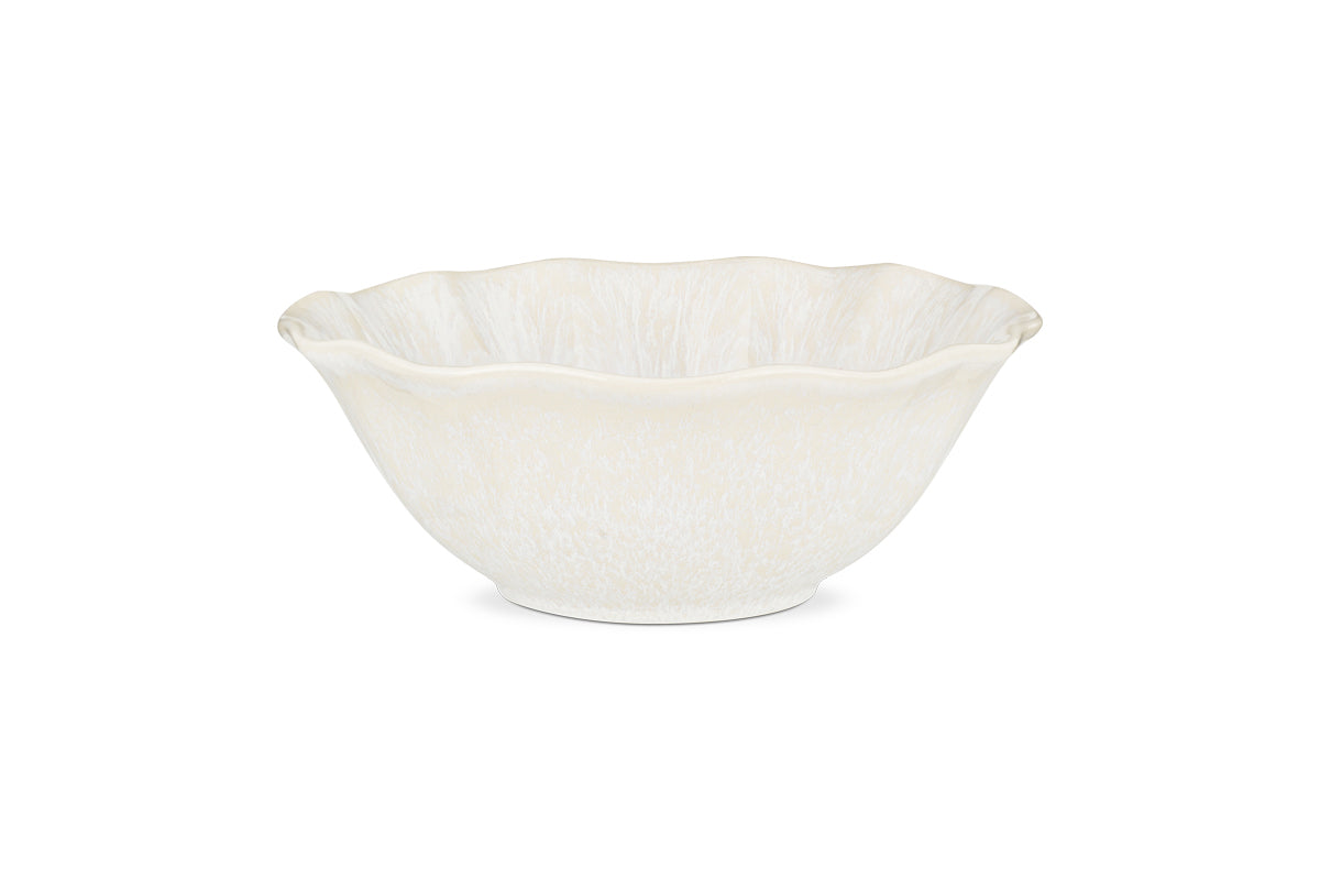 Adding a refined and elegant touch to a table setting, the Aruvi Bowl stands apart from other stoneware pieces thanks to its fluted form, that is pressed and then hand-finished, creating gently scalloped edges that give it it’s tactile charm. The creamy, white reactive glaze develops a very subtle and delicate patina in the kiln that makes each piece unique.