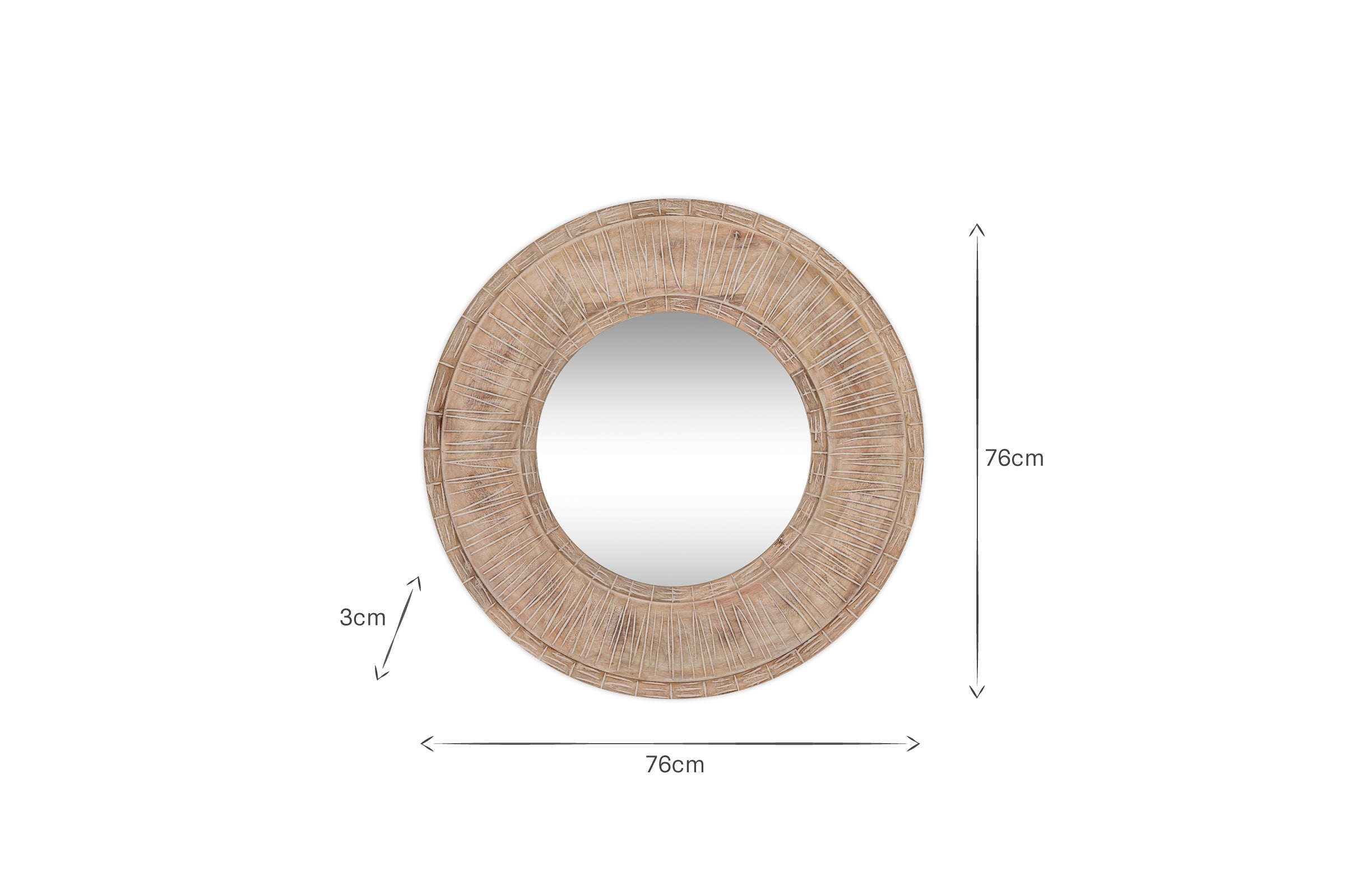 Crafted from hand-carved mango wood with a rustic white wash finish, we love the shape of this classic yet distinctive mirror. The soft colour tones and unique design of the wood make it a beautiful standalone feature in hallways, living rooms, or bedrooms. Functionally artistic and elegantly understated this piece perfectly reflects both style and craftsmanship.
