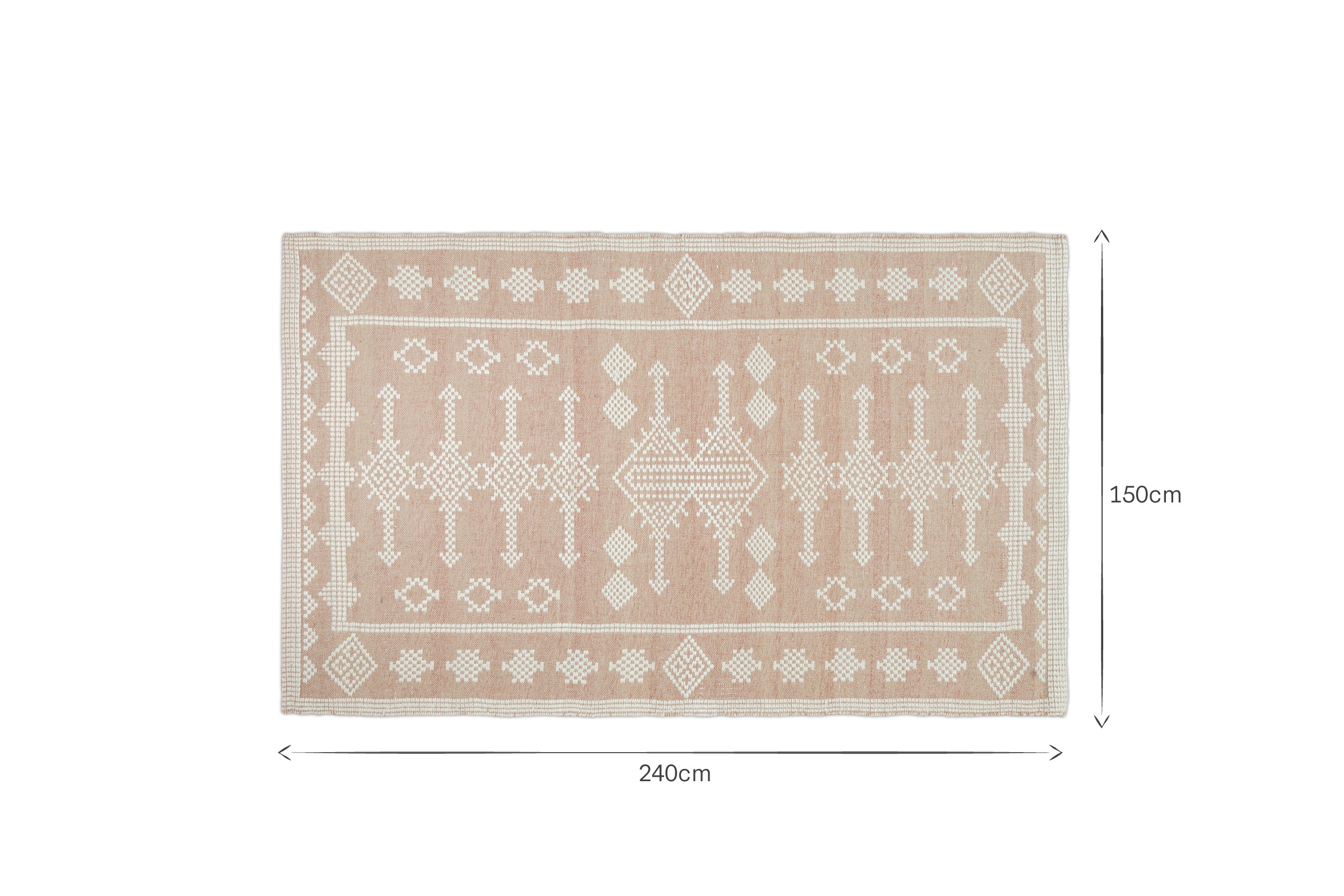 The perfect blend of comfort and style, our Kittale rug is handcrafted from soft wool and recycled materials, creating a sublime and cosy feel underfoot. Its traditional Indian design, made on a handloom, adds texture to your living space. The soft, distressed pale rose colour adds an ambient charm, making it a beautiful addition to your bedroom. Available in two sizes.