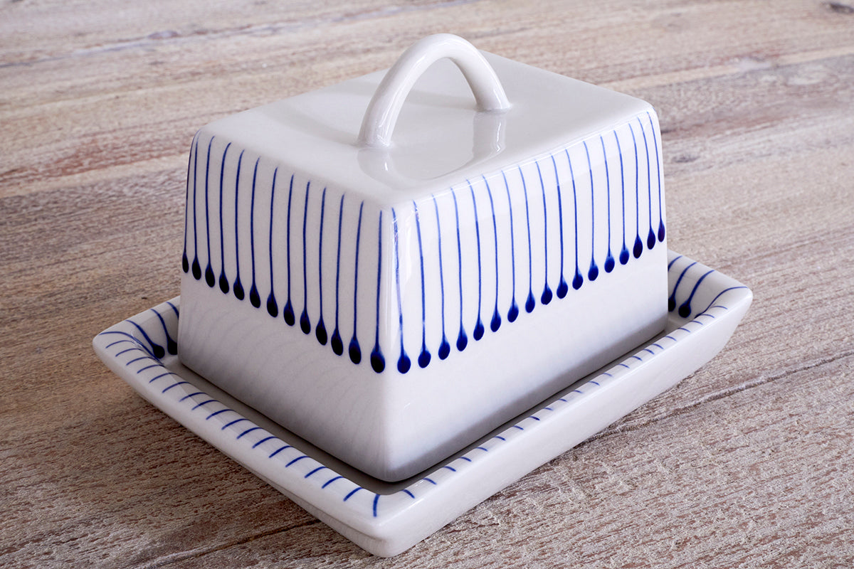 Our Iba Butter Dish is handmade from white clay and delicately hand-painted in Vietnam with an intricate matchstick pattern. Light and fresh, it’s part of our Iba collection, offering a clean, modern design. Combining artisanal craftsmanship with practical functionality, it adds a touch of elegance to your every day.