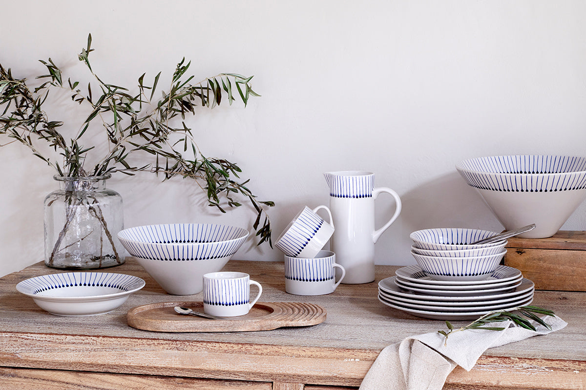 Keeping traditional skills alive, our renewed Iba collection is handcrafted in Vietnam by talented ceramicists using a wealth of techniques, some of which over thousands of years old. Each piece is individually shaped by hand before a simple but stunningly delicate matchstick design is hand-painted.